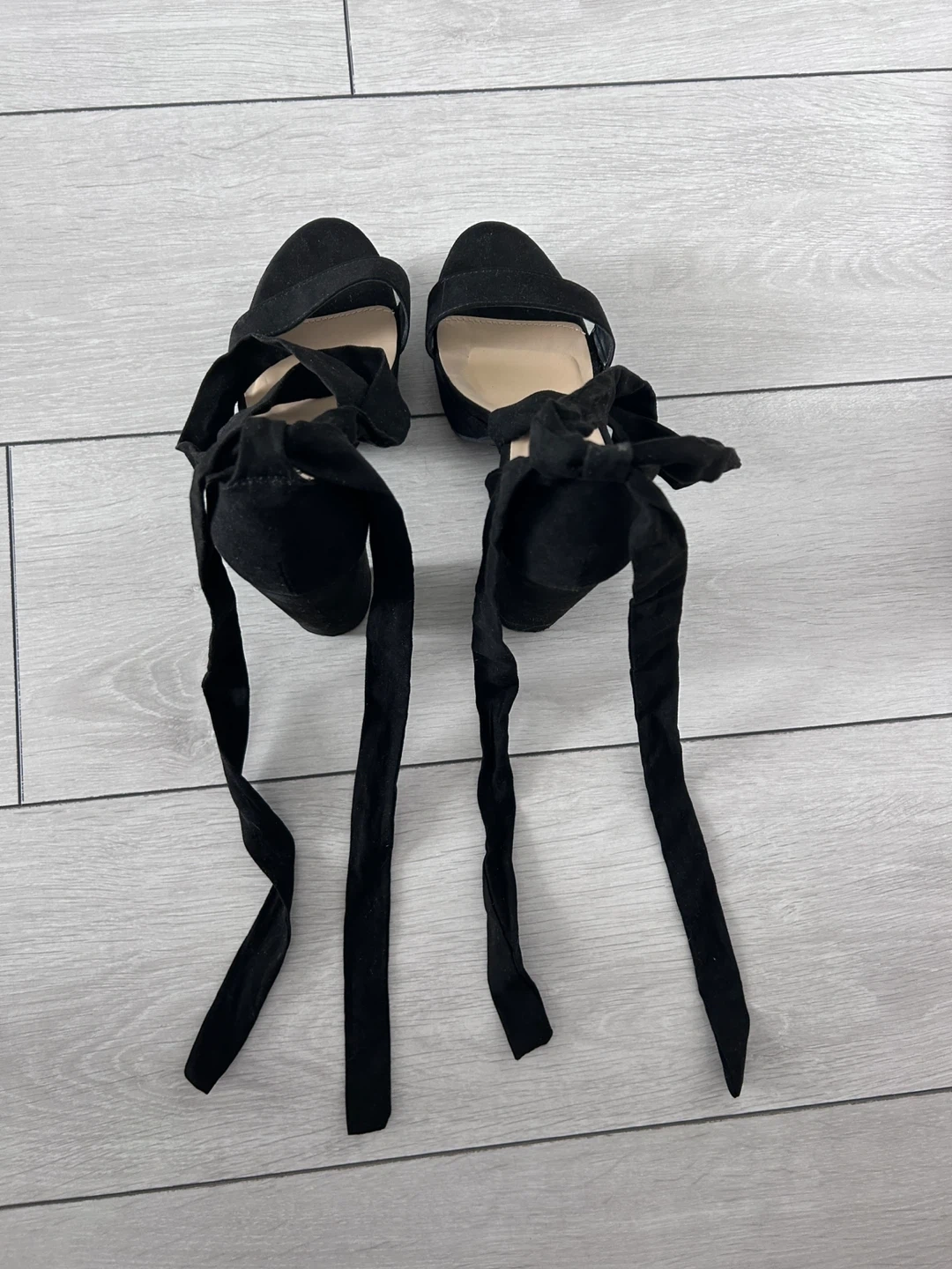 Fashion Nova Black Suede Platform Lace-Up Heels