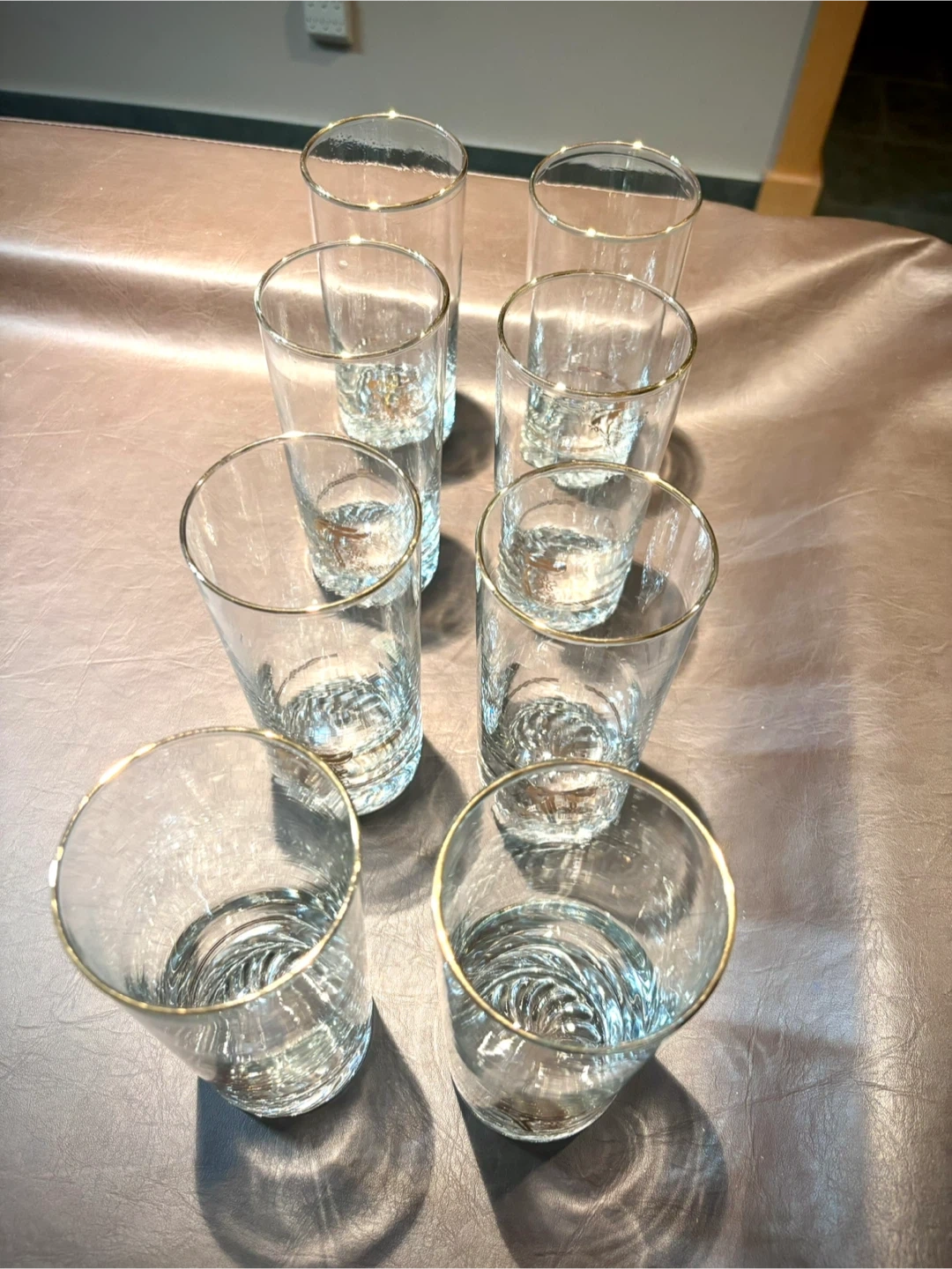 The base of these highball glasses are made of solid, heavy swirled glass.