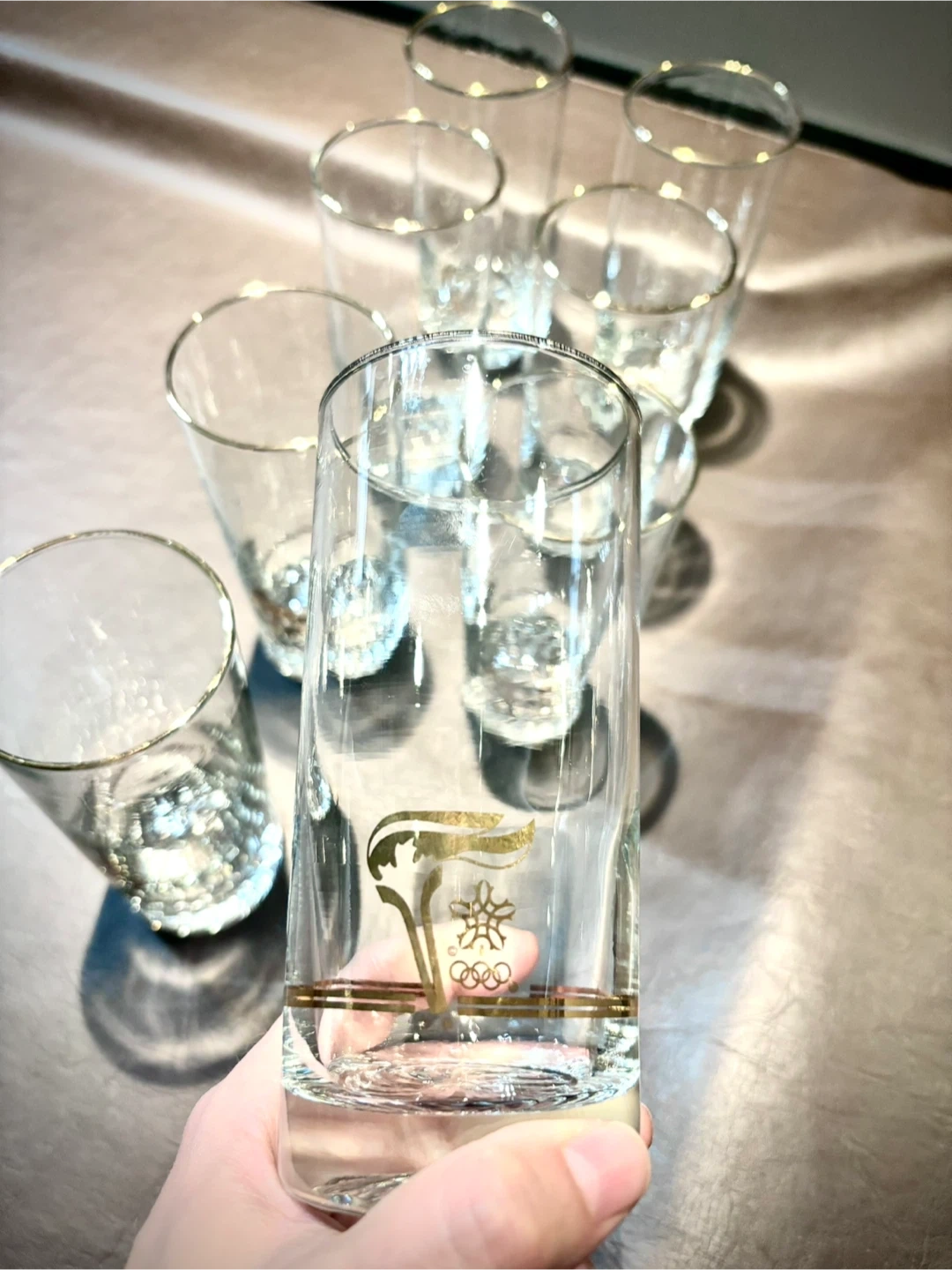 They feature a 22K Gold Rim and a gold Olympic torch logo, along with a Canadian maple leaf and Olympic rings design, which was the Olympic Logo for the 1988 Calgary Winter Olympic Games.