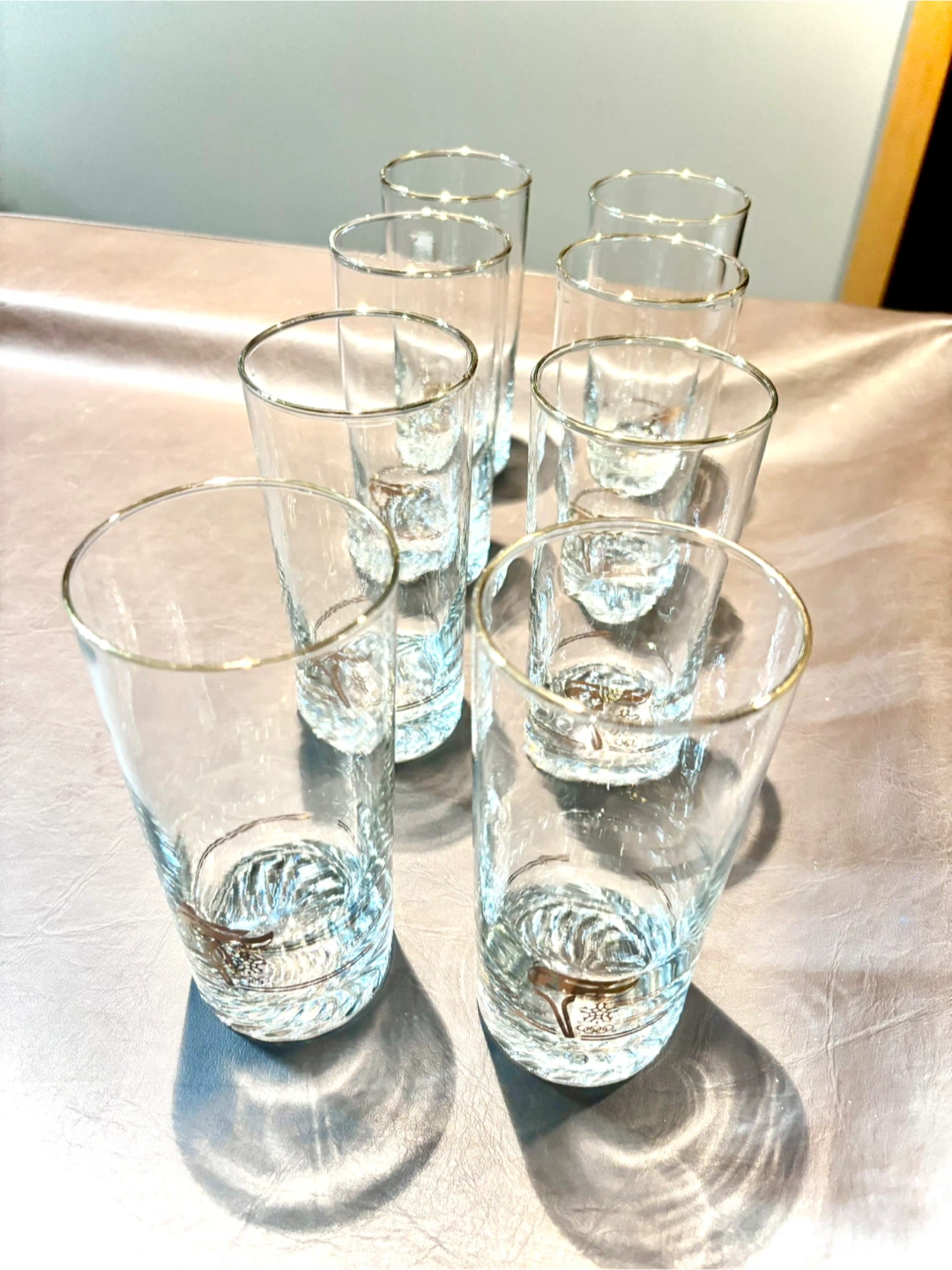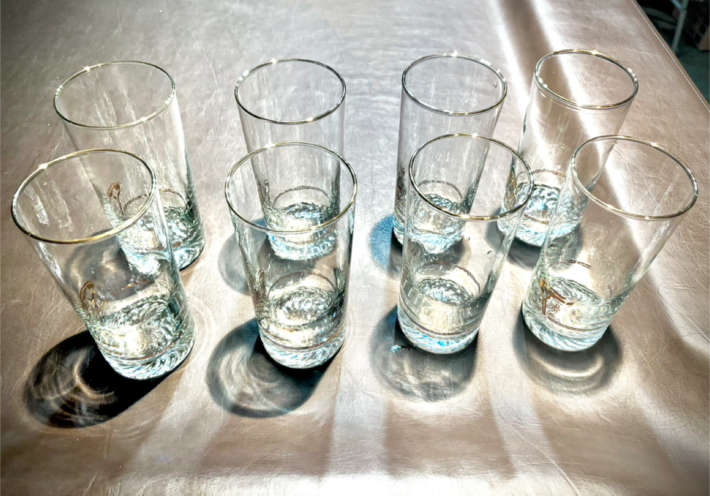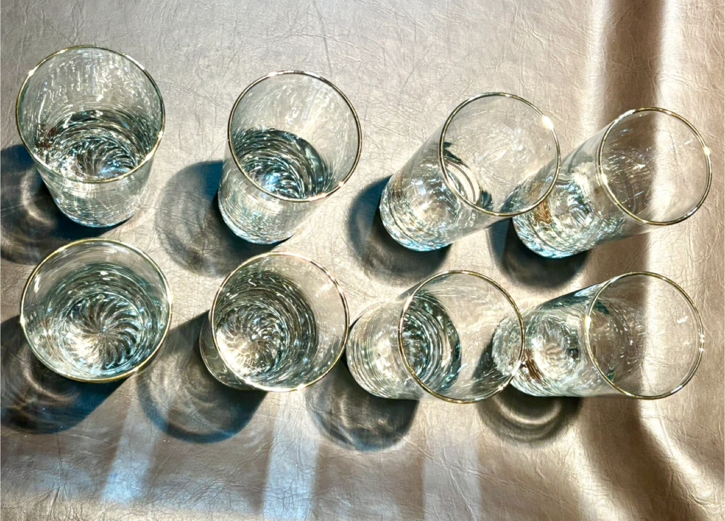 The base of these highball glasses are made of solid, heavy swirled glass.