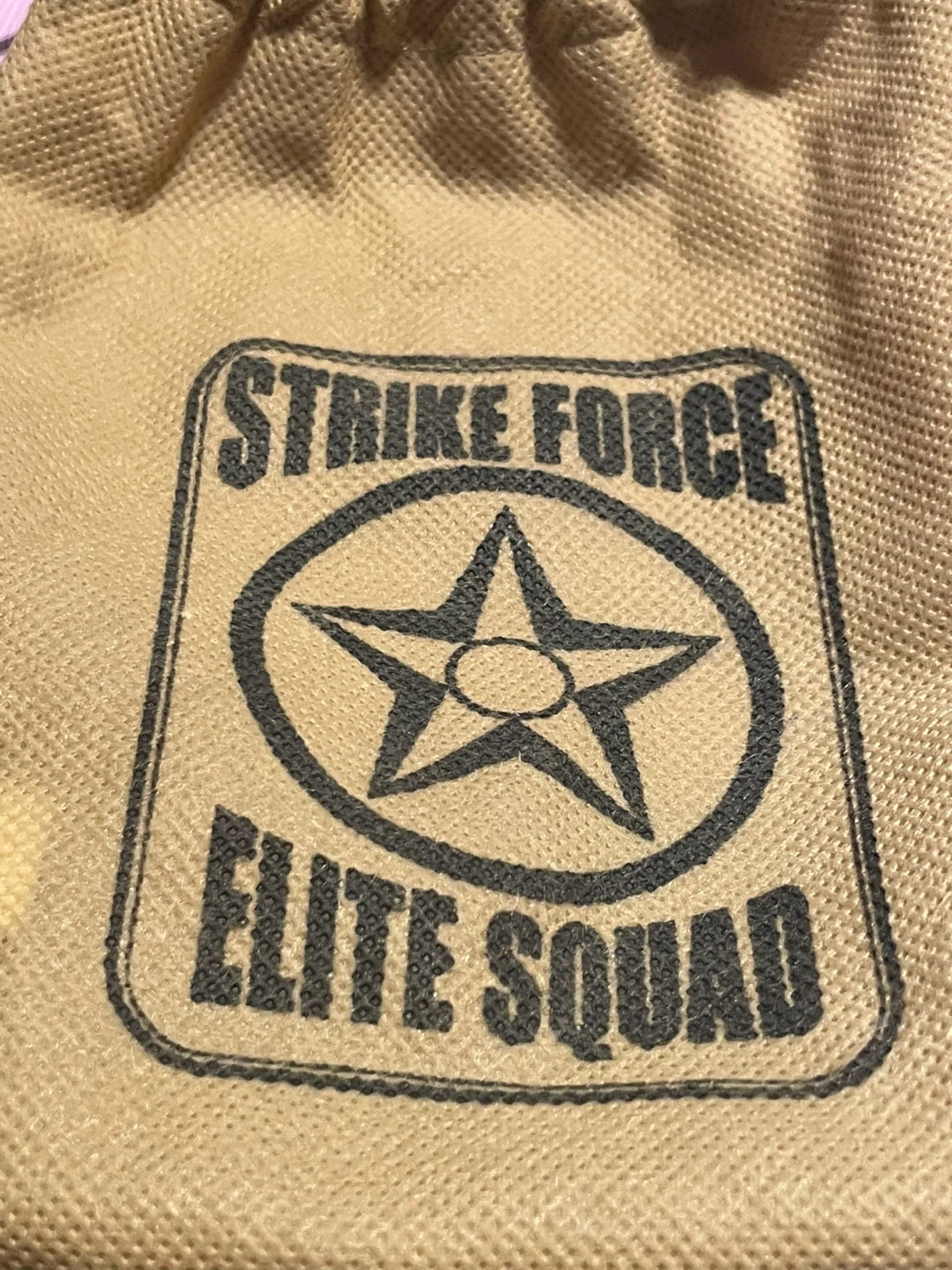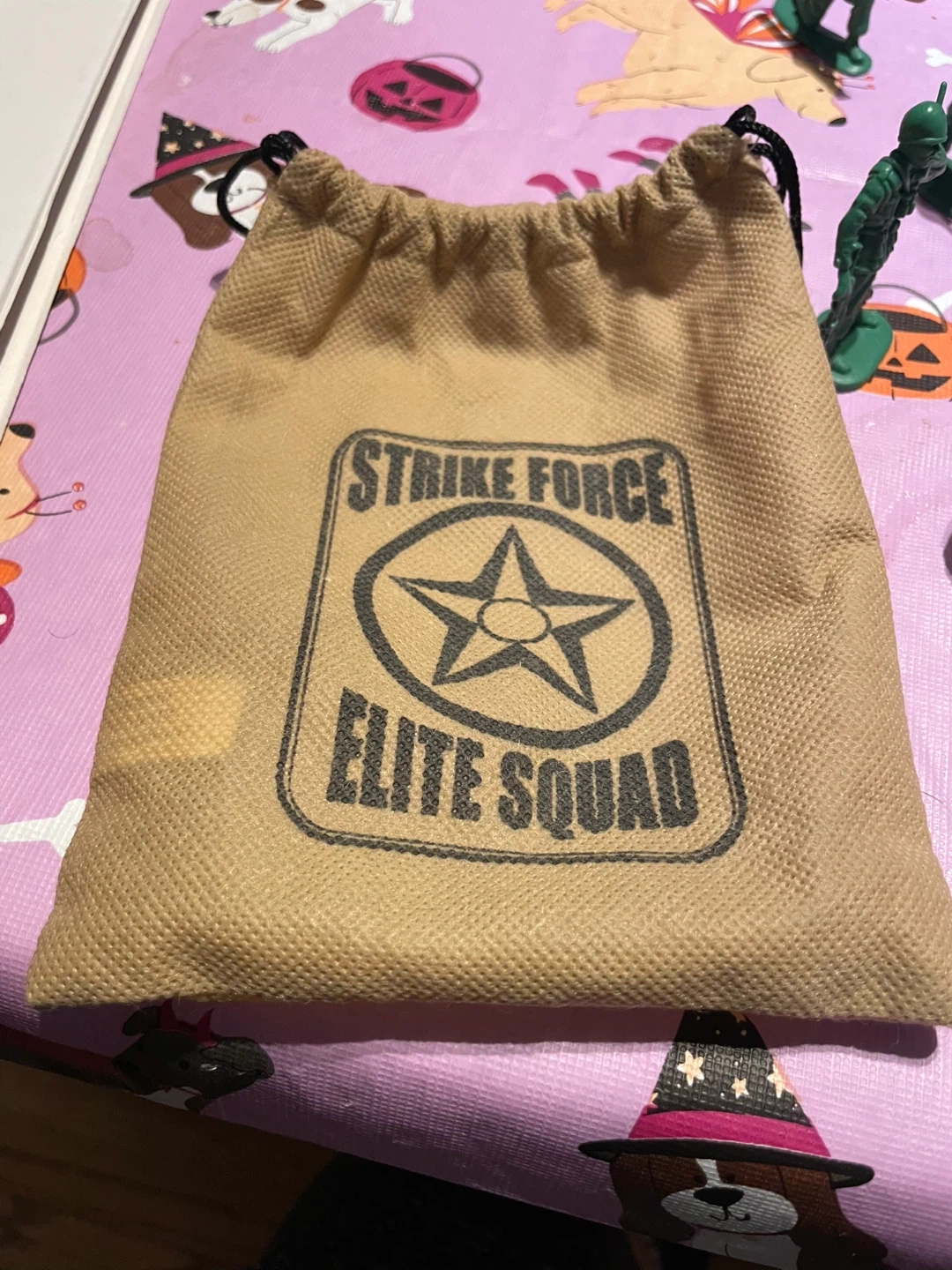 Here's a collection of Strike Force Elite Squad toy soldiers. They come in a drawstring bag with the Strike Force Elite Squad logo on it. Great for imaginative play!