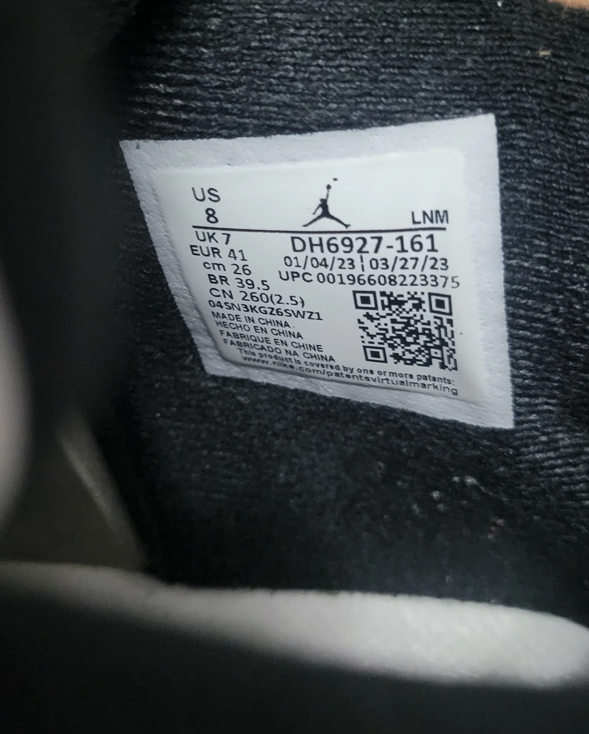 These Air Jordan 4 Retro sneakers feature a white, red, and black colorway. The style code is DH6927-161. US size 8, UK size 7, EU size 41, CM size 26. Made in China. They're perfect for everyday wear or basketball!