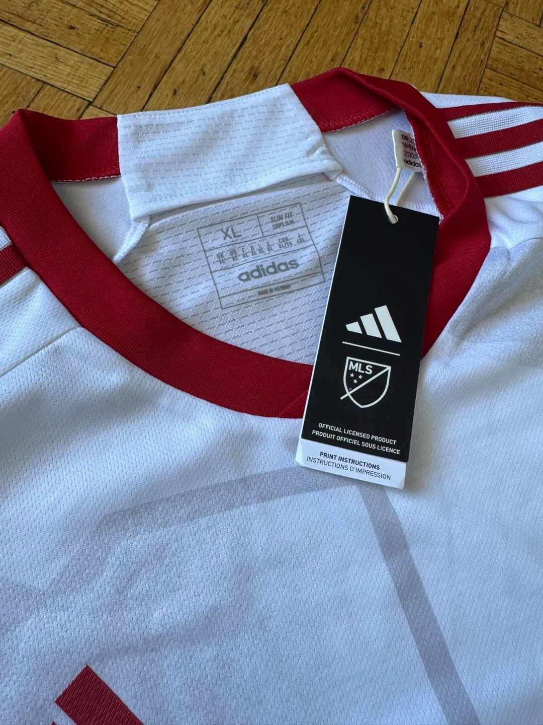 This Adidas jersey features Toronto FC's authentic design. It's made with AEROREADY technology for comfort. The size is XL. It's an officially licensed MLS product.