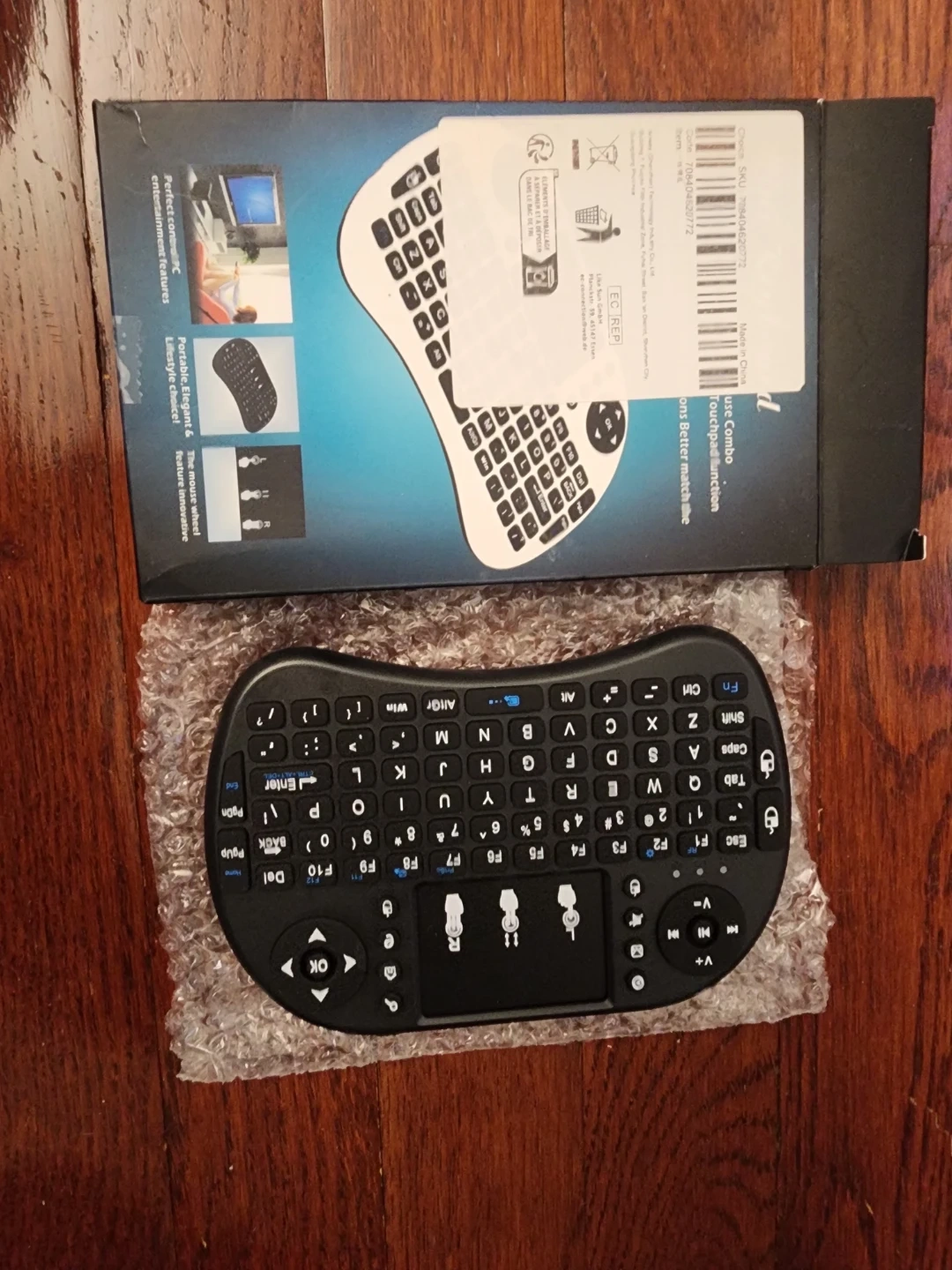 This portable wireless remote control keyboard features a full QWERTY layout and a built-in touchpad. It's designed for PCs, notebooks, smart TVs, and other devices. It's a convenient tool for navigating menus and typing without leaving your seat!