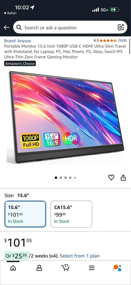 Portable Monitor 15.6” FHD 1080P – Ultra-Slim IPS