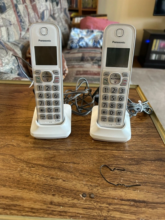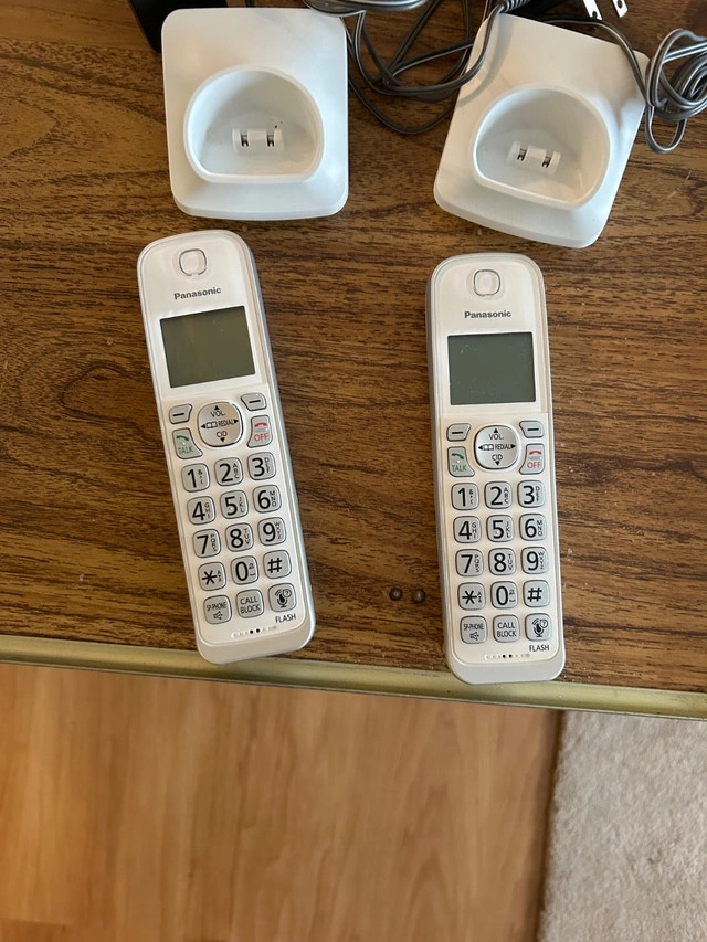 Excellent condition Panasonic cordless phone system. Clear sound, loud ringer, big buttons, very reliable. Panasonic KX-TGDA59C. Works perfectly with cell-to-home adapters so you can use your cell phone instead of paying for a landline. Features Caller ID, Speakerphone, Intercom, and long battery life. Very easy to use. Great for seniors, acreage homes, RVs, cabins, or anyone who cancelled their landline.