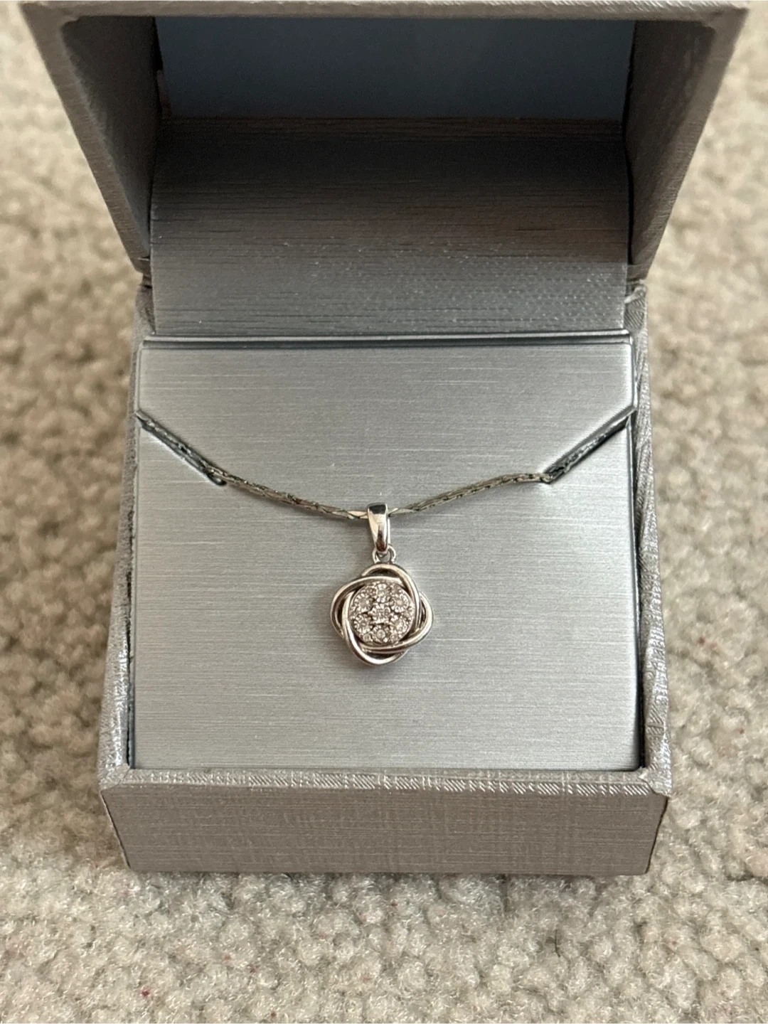 Selling a lovely silver flower pendant necklace. It comes with the original box, perfect for gifting or safekeeping! The necklace is in great condition and ready to be worn.