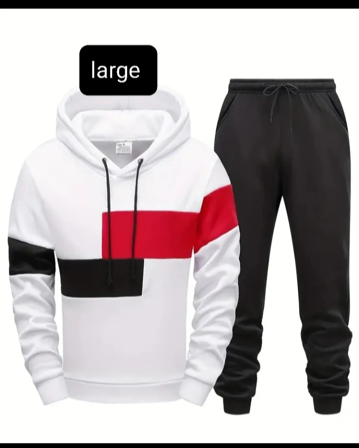 Selling multiple men's tracksuit/jogger suits consisting of a hoodie and pants. The size is Large. Available in various colours and designs. Perfect for casual wear or workouts!