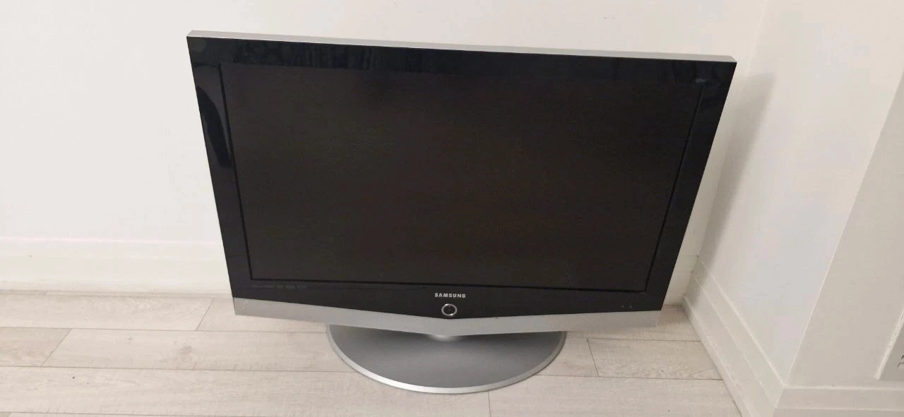 This is a 42' inch Samsung television. It has a sleek silver and grey design.It works well but don't have remote control .It's ready for your viewing needs!