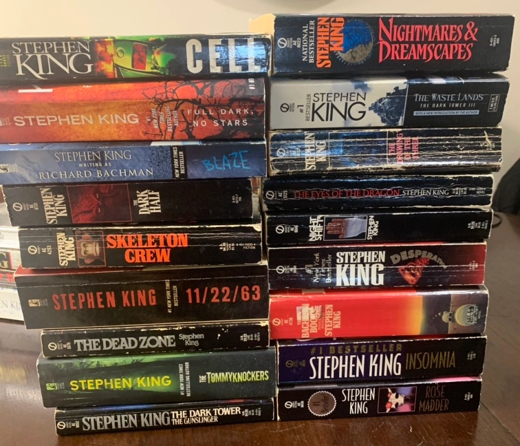 A stack of 18 Stephen King paperback books for $50or $5 per book