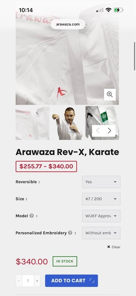 Buy & SellArawaza Onyx Rev-X Kumite Karate UniformArawaza Onyx Rev-X Kumite Karate Uniform$280Size L. Feel free to message if you have any questions!WHERE TO MEETPark royalView MapSELLERParinaPark Royal100 reviews0 chats·0 favorites·2 viewsSEND CHAT TO SELLERHi Parina! I’m interested in your listing.Hi Parina! I’m interested in your listing.Get the Karrot app to chatSign In to chat