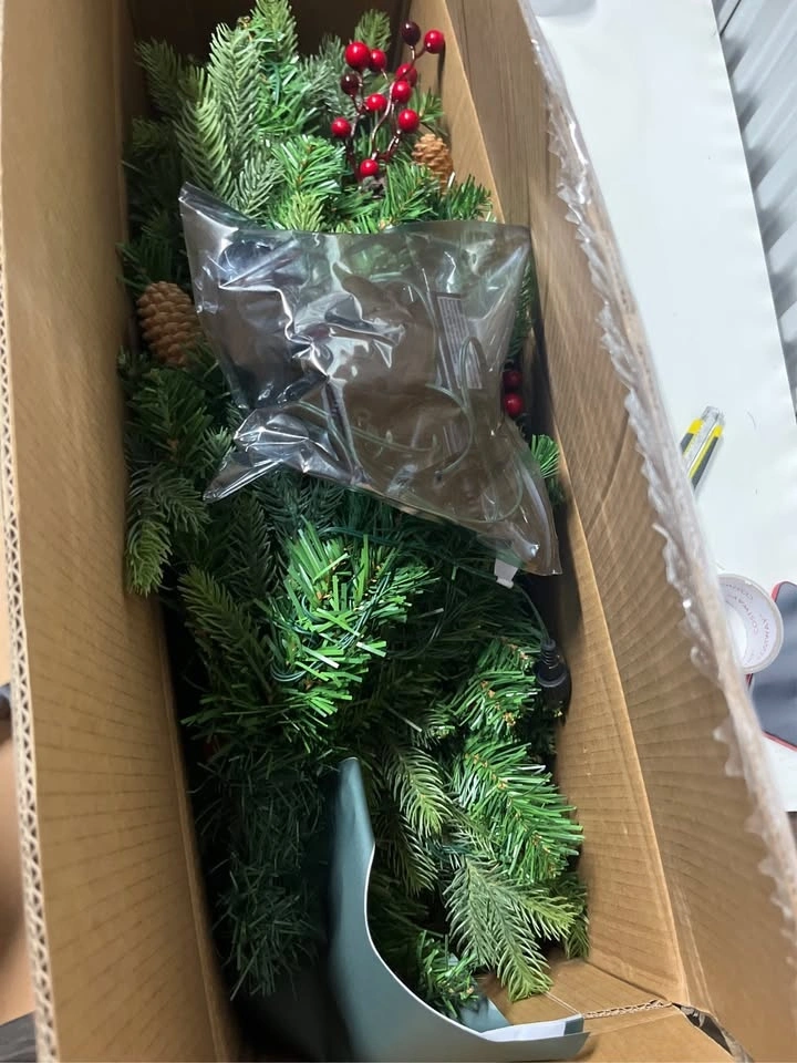 Pre-installed 60 multicolor lights, plus 10 pine cones and 10 red berries. Looks ultra-realistic.
