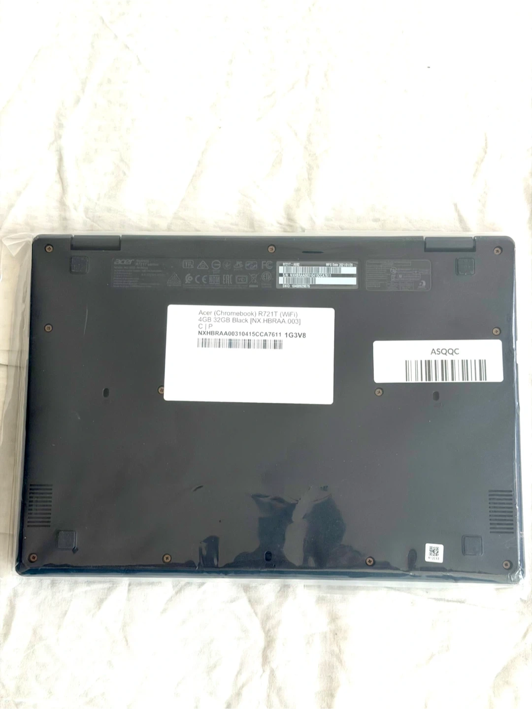 Acer Chromebook R721T (WiFi). 4GB RAM, 32GB storage. Black color. Manufactured 2021/01/28. This Chromebook is great for everyday tasks like browsing and email. No charger