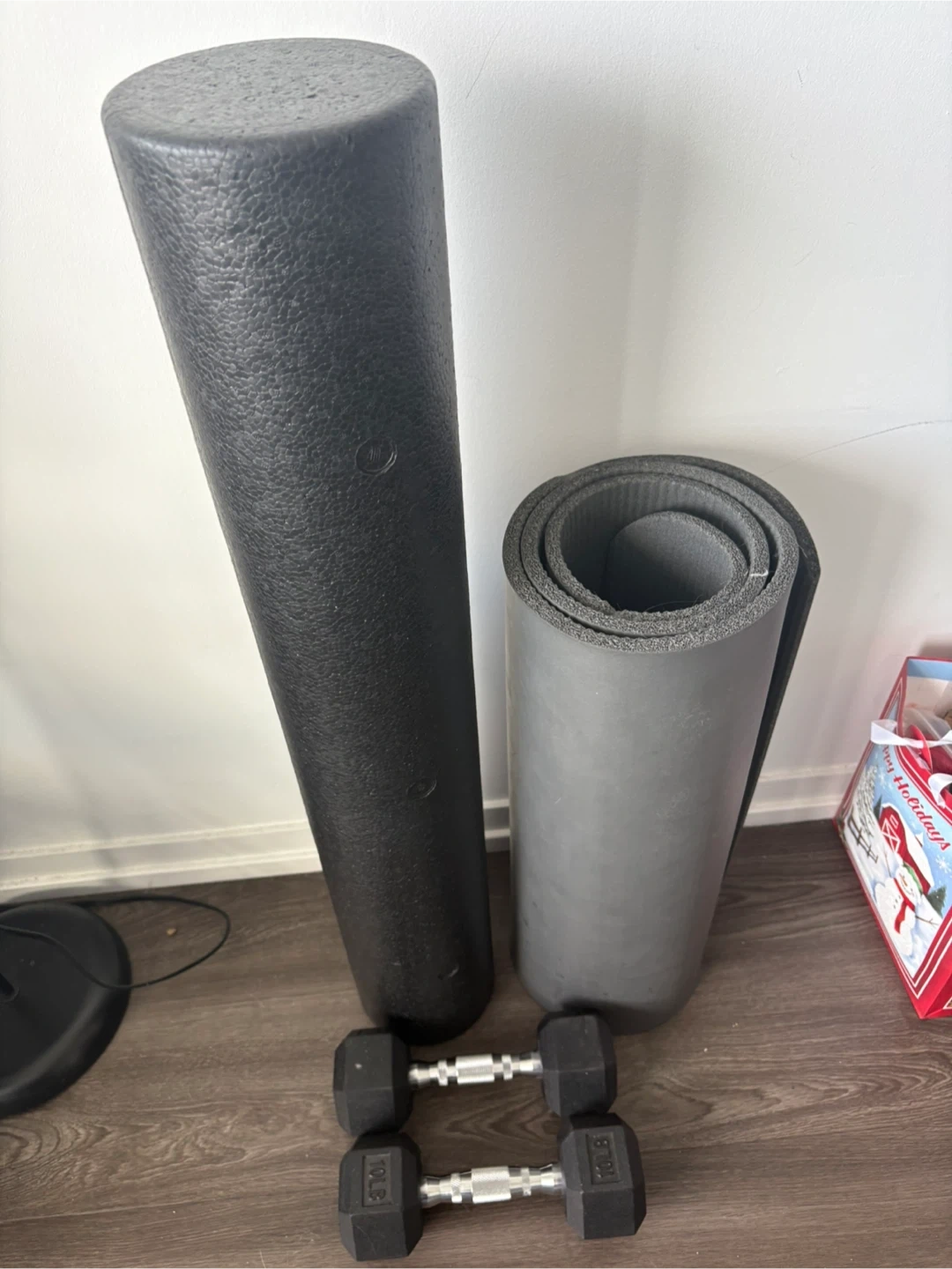 Foam Roller, Yoga Mat, 10lb Dumbbells and Resistance Bands