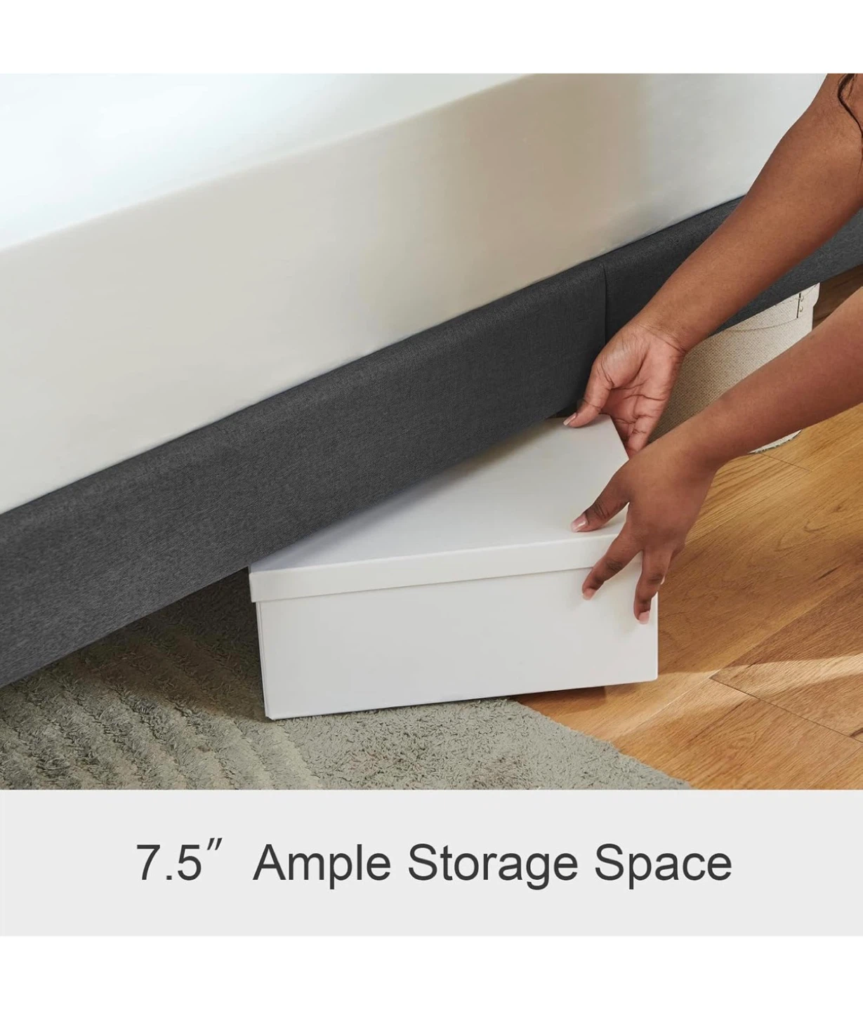 Selling a full size bed frame with a dark grey upholstered headboard in brand-new condition. No stains, no damage, and extremely sturdy. The dimensions are 77" x 54" with a headboard height of 42". It can support up to 800 lbs. Frame also has a soft upholstered headboard- High resilience sponge padding, comfortable and breathable.