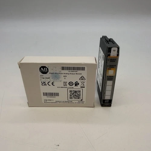 Genuine Rockwell Automation POINT I/O module. Clean condition as shown in photos. This is a 4-channel current output module designed for Allen-Bradley POINT I/O distributed control systems. It provides precise 4–20mA analog outputs for process control applications including valves, drives, transmitters, and other field devices. Ideal for PLC systems, distributed I/O architectures, industrial automation panels, and process control systems. Includes the Allen-Bradley 1734-OE4C Module and original box. Requires compatible POINT I/O base and network adapter (not included). Please verify compatibility with your system before purchase.