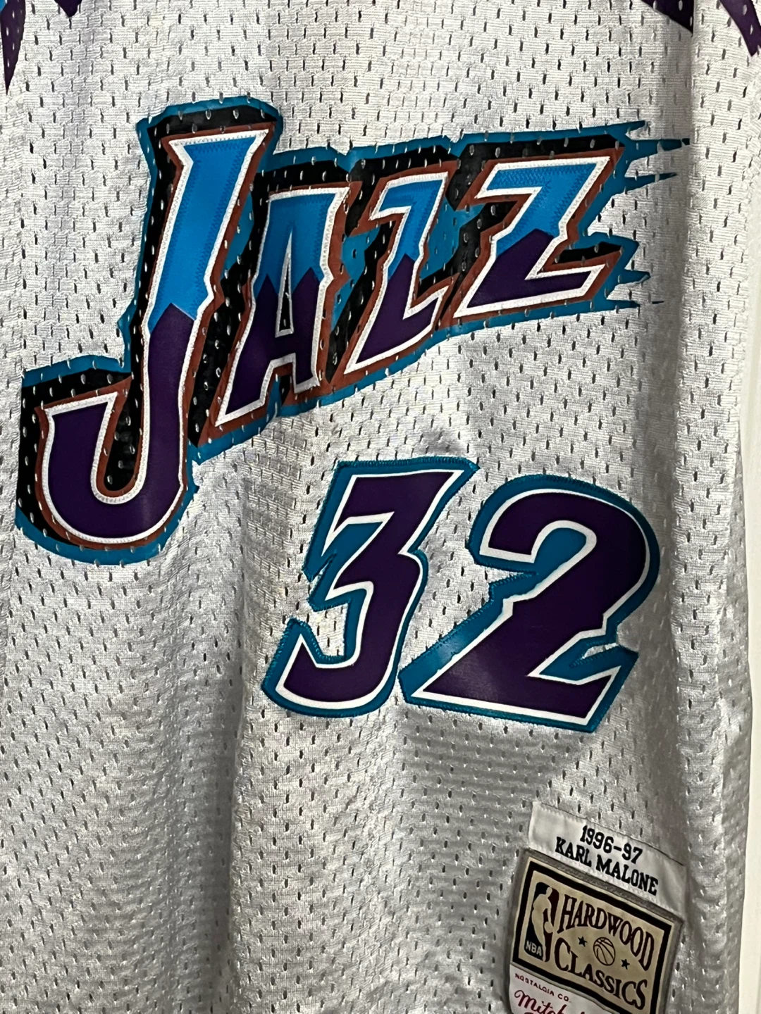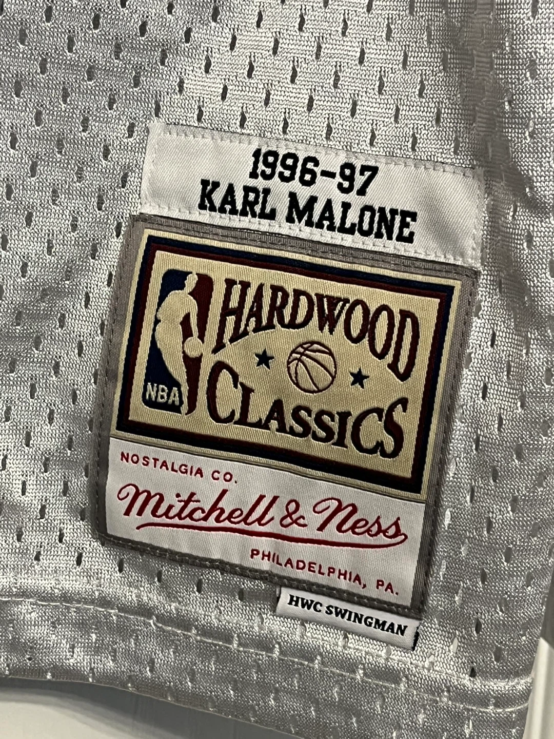 Mitchell & Ness NBA Hardwood Classics Swingman jersey of Karl Malone of the Utah Jazz. This jersey is a men’s size large. It's the 1996-97 Hardwood Classics edition. Practically brand new.