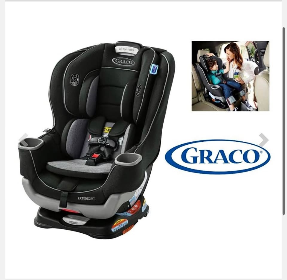 Selling a brand new Graco Extend2Fit Convertible Car Seat in Titus Grey/Black (Model 2149057). Retail price: $419 + tax. Date of Manufacture: 25/04/15. Features: Rear-facing up to 50 lbs, Forward-facing up to 65 lbs. Includes an adjustable 4-position extension panel for extra legroom, 10-position headrest with 5-point harness, and side-impact protection. The seat pad is machine-washable. Perfect for long-term use as your child grows. Durable, safe, and comfortable. Pickup available in Vaughan, Innisfil, or Mississauga.