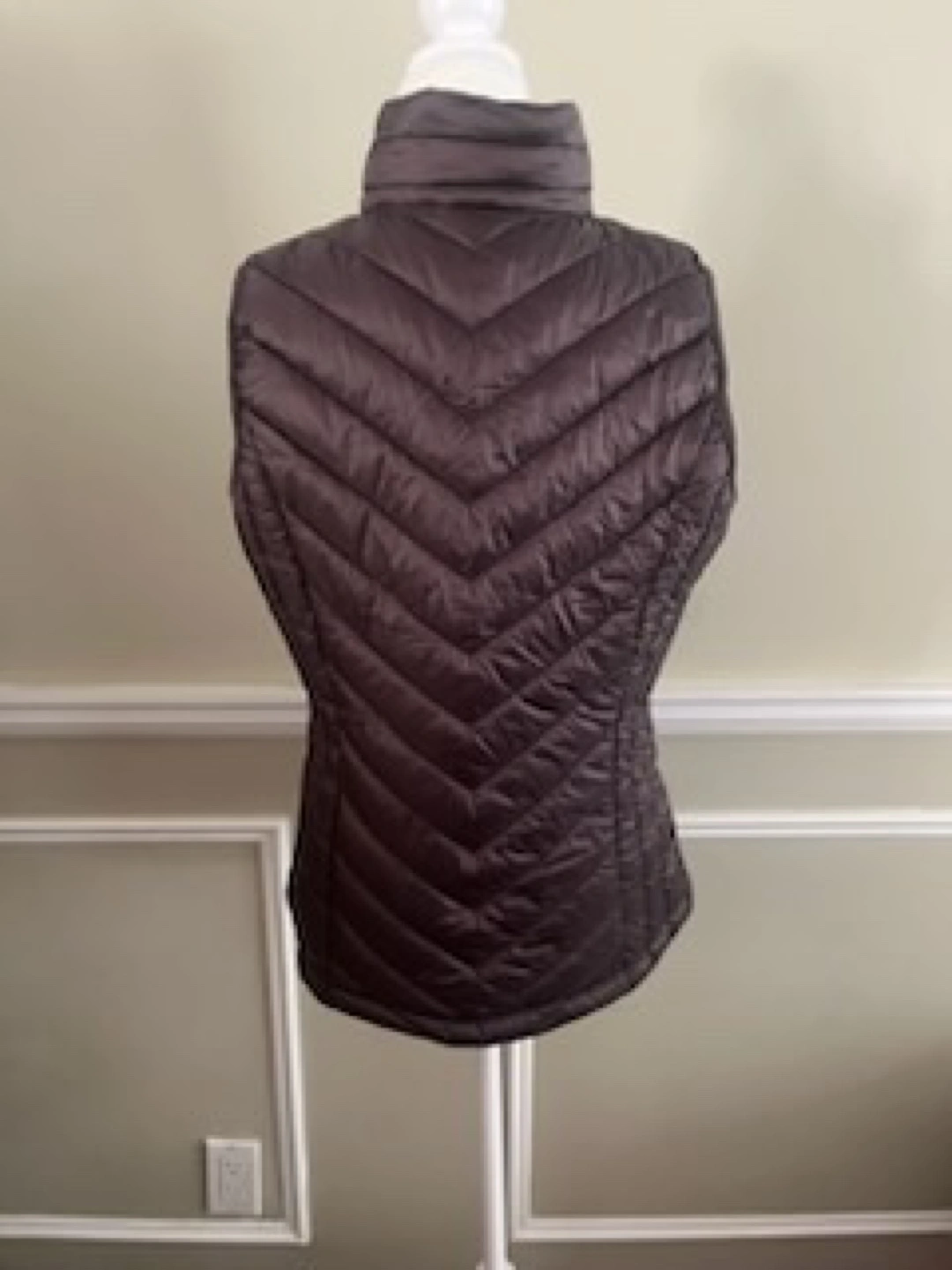Brown lightweight vest with a zipper closure. Has pockets on the Comes with tags attached and little pocket bag to put in