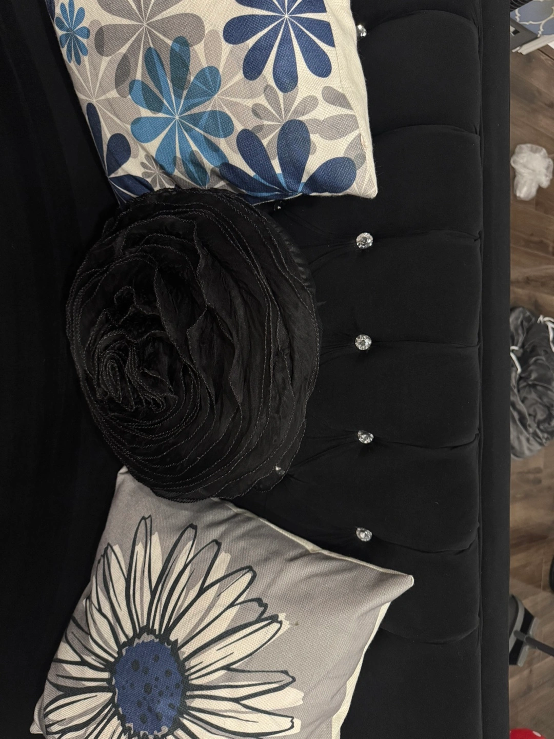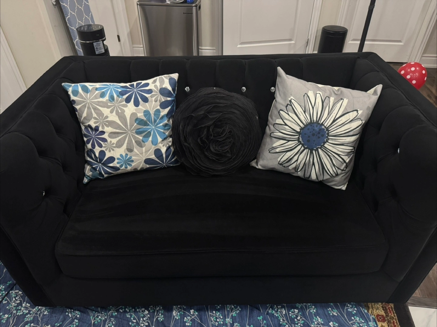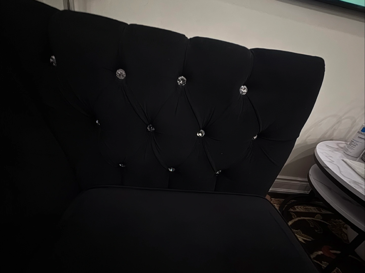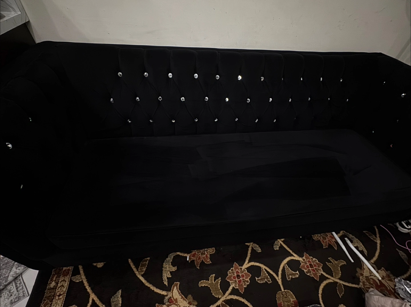 piece that could add a touch of elegance to any living space. The sofa features button-tufted detailing and a sleek black finish.