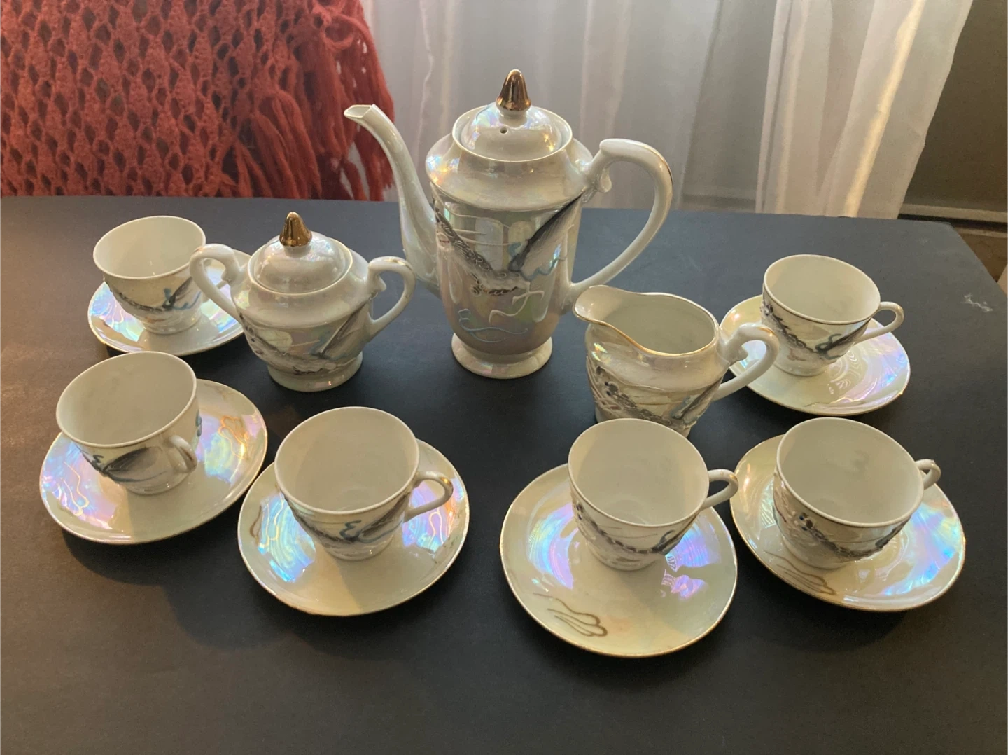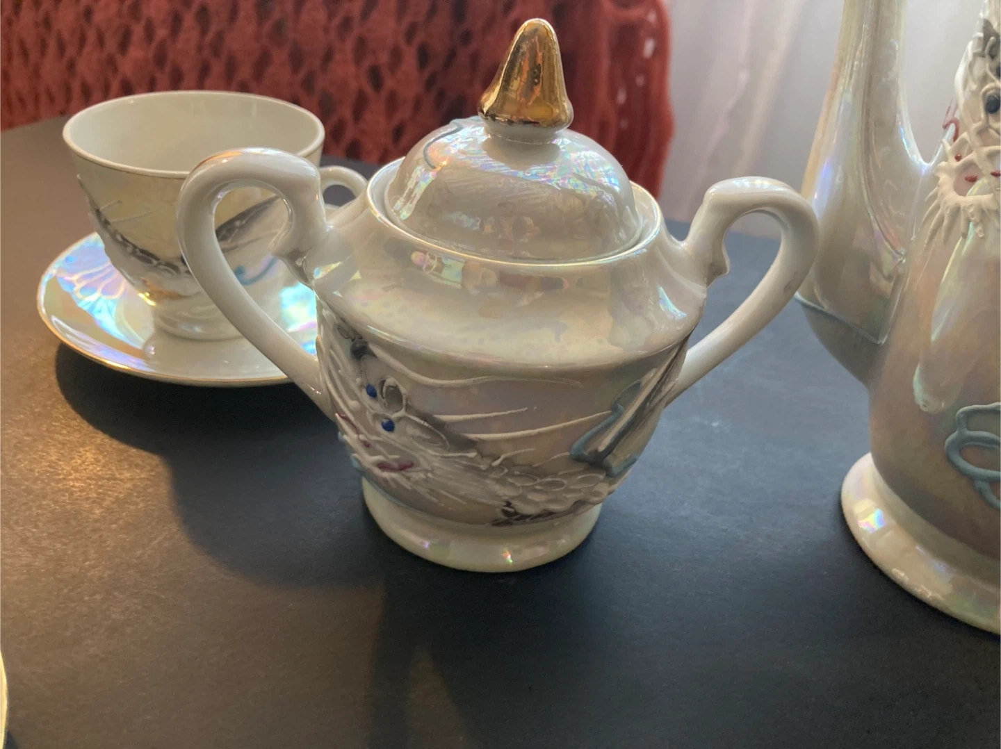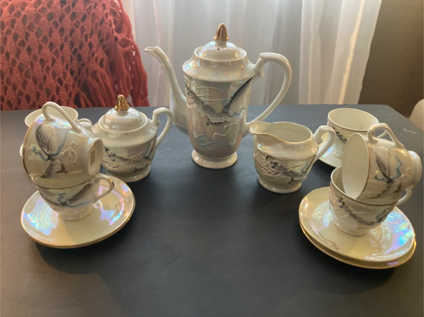 Vintage Hand painted Japanese Dragonware set. Teapot, cream, sugar with lid, 6 cups and saucers.