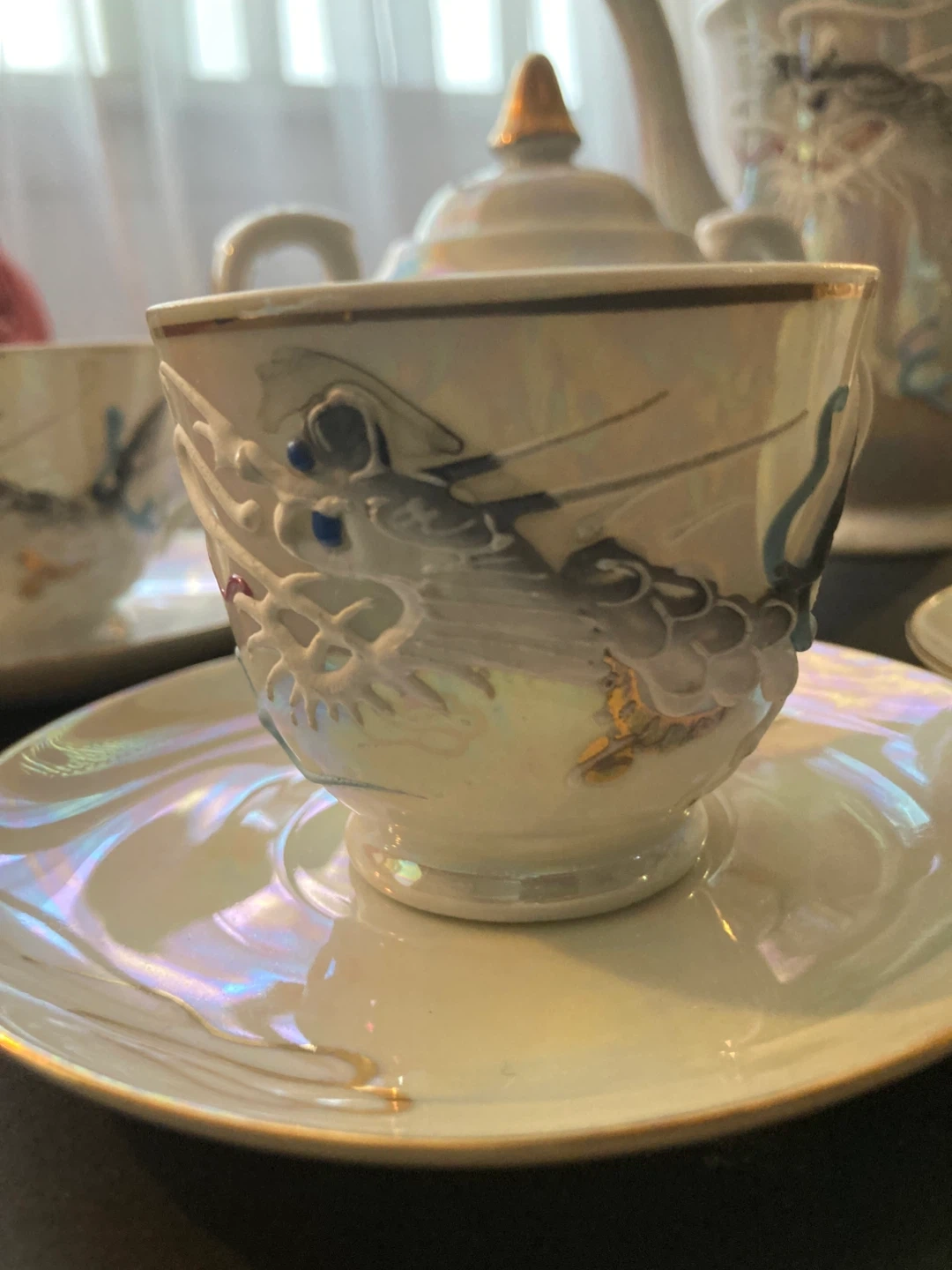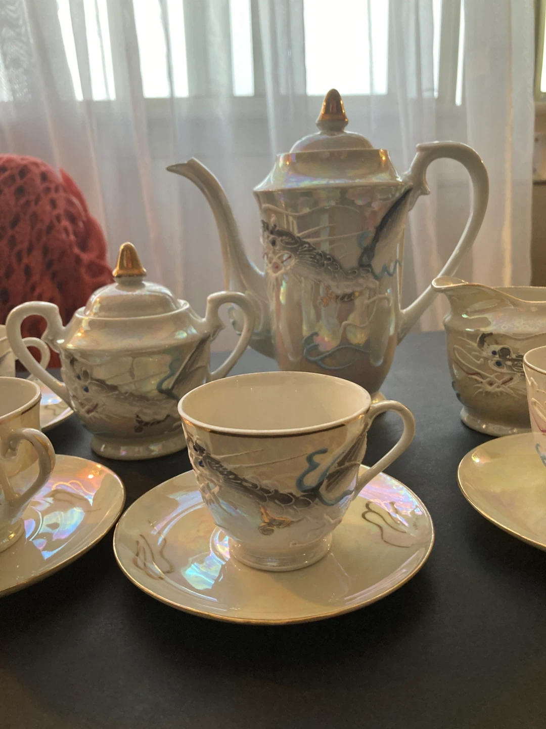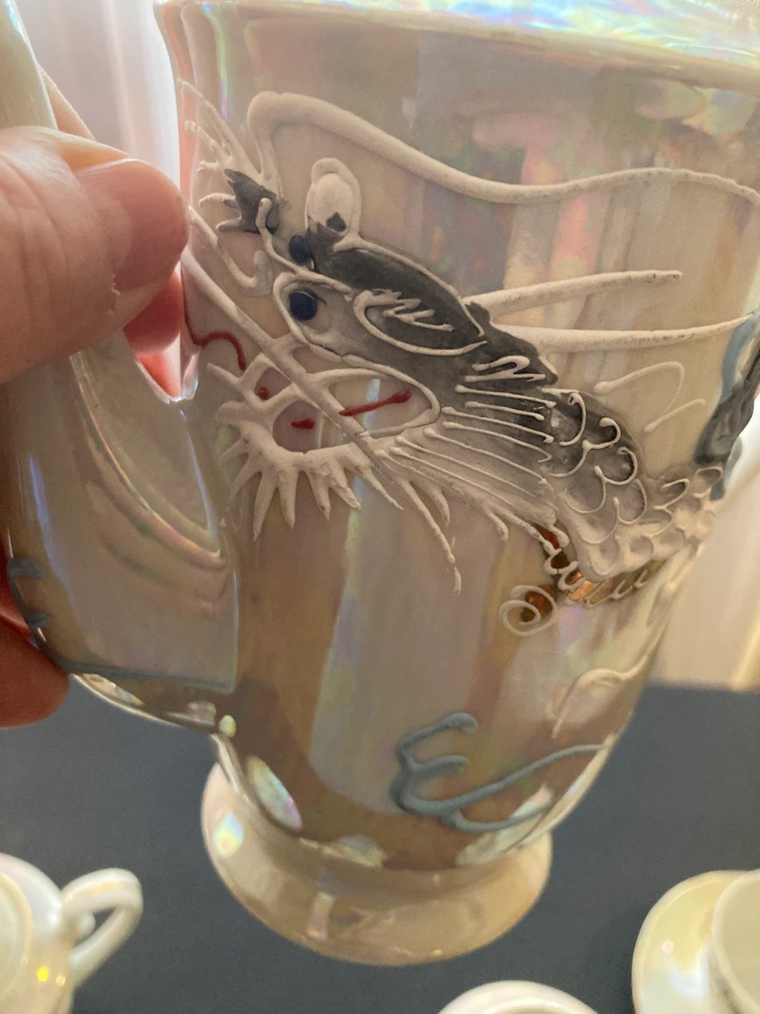 Vintage Hand painted Japanese Dragonware set. Teapot, cream, sugar with lid, 6 cups and saucers.