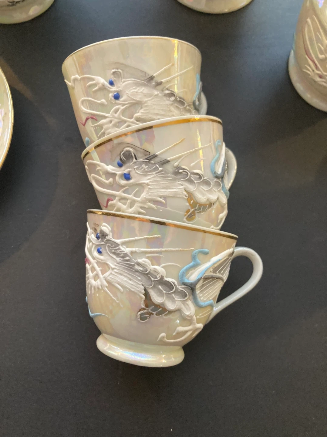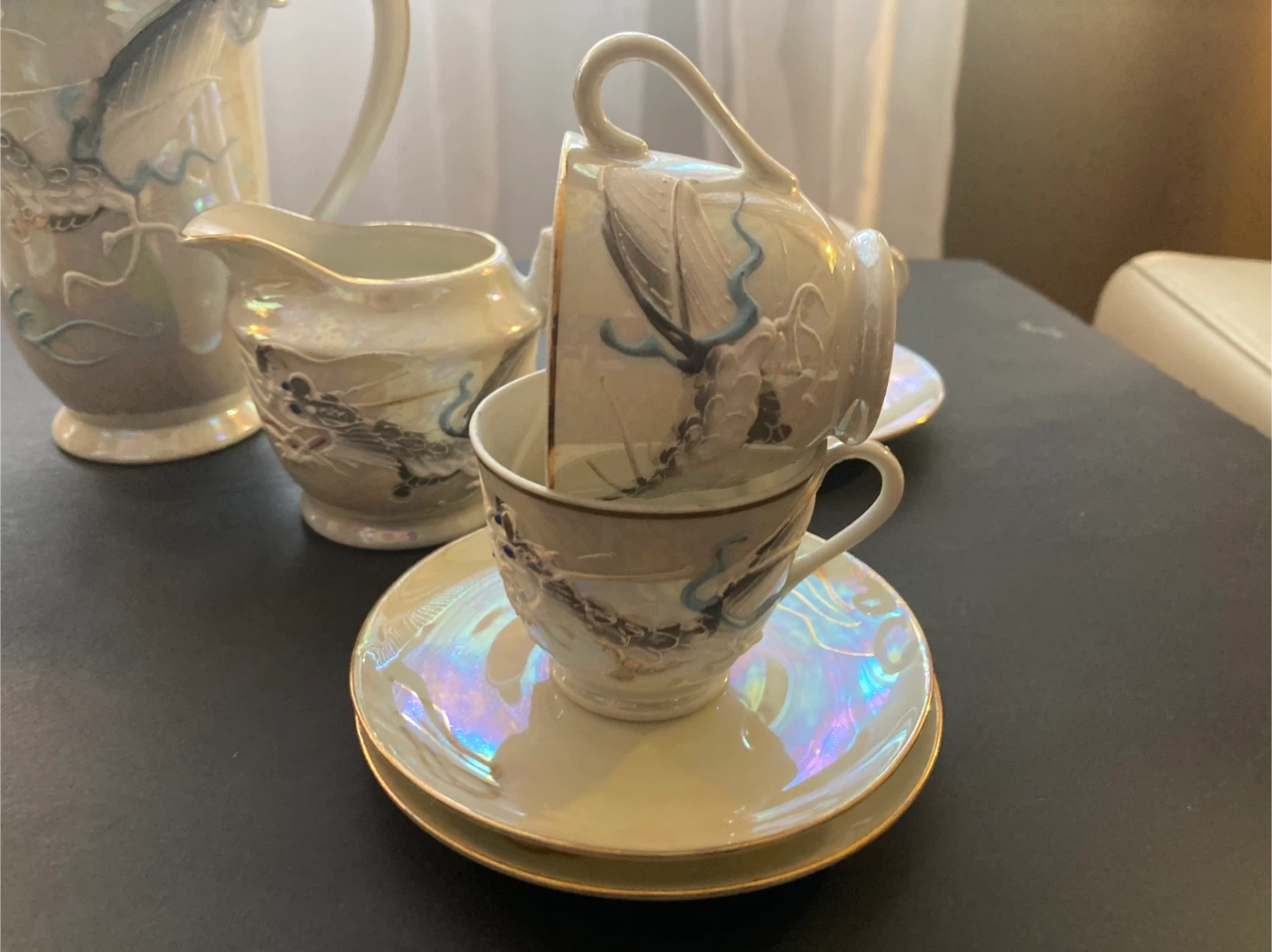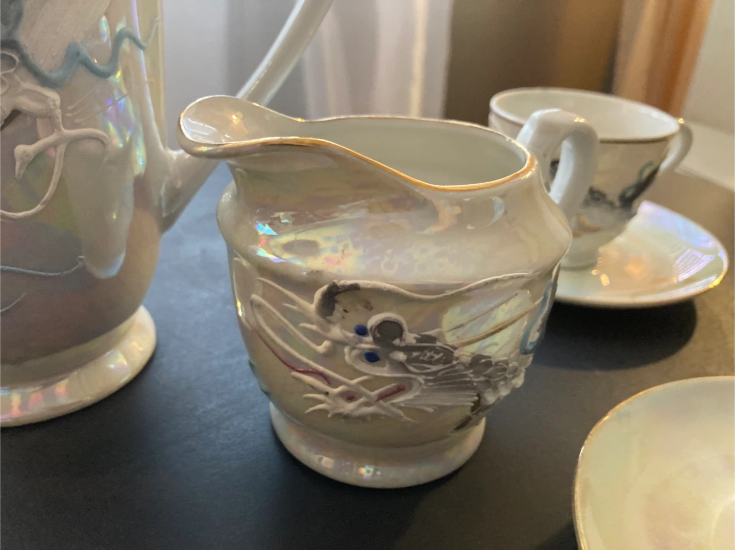 Vintage Hand painted Japanese Dragonware set. Teapot, cream, sugar with lid, 6 cups and saucers.