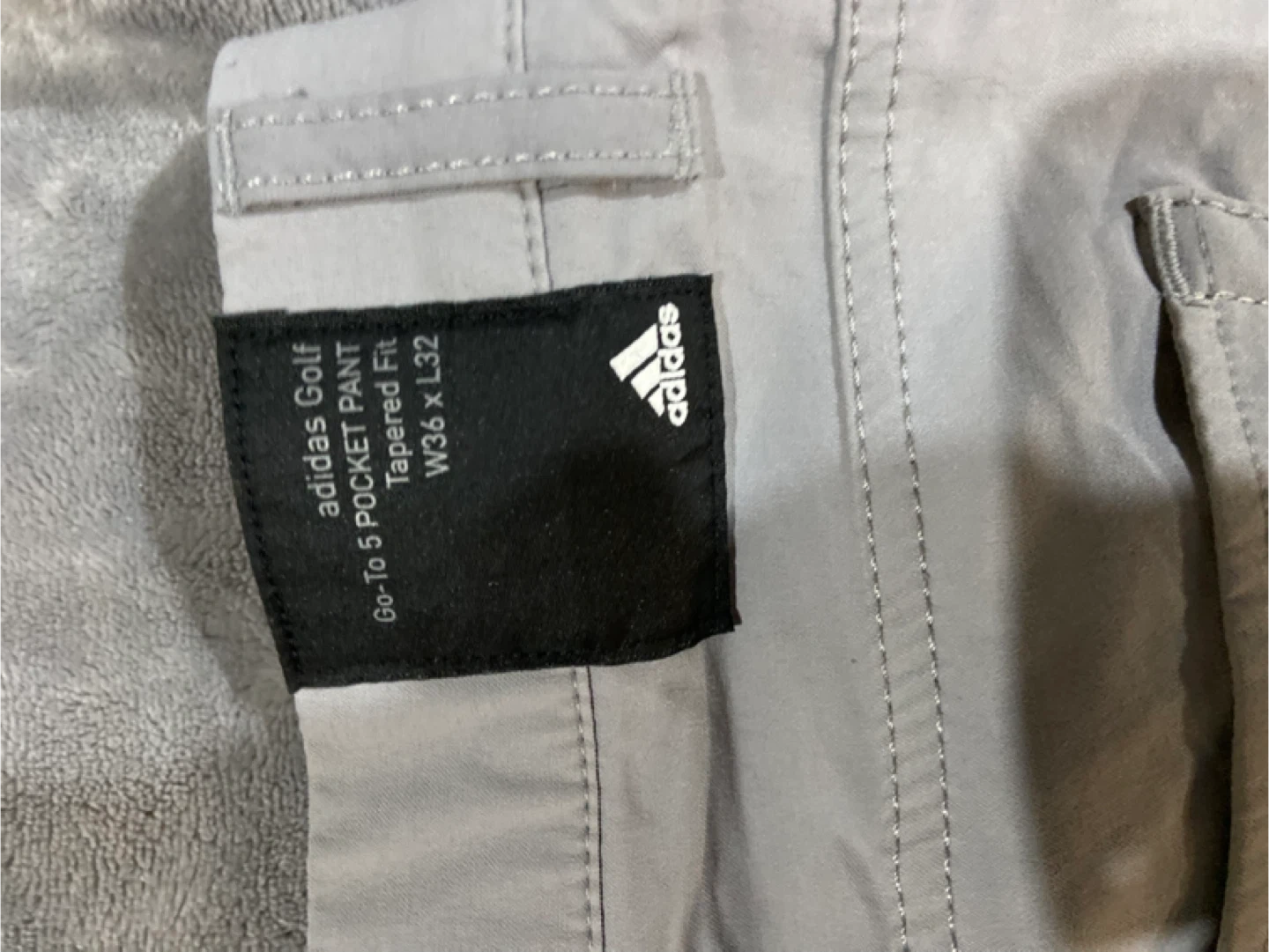 Adidas Golf pants in a light grey colour. They're a tapered fit with a W36 x L32 waist and inseam. Primegreen material. 10 for them