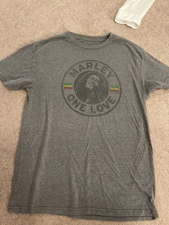 Buy & SellMen's Large Bob Marley T-ShirtMen's Large Bob Marley T-Shirt$20Bob Marley 'One Love' T-Shirt. Material: 50% Cotton, 50% Polyester. Size: Large. Condition: Used - Good. Cash accepted.WHERE TO MEETCheck LocationView MapSELLERLynnyBelle River100 reviews0 chats·0 favorites·0 viewsSEND CHAT TO SELLERHi Lynny! I’m interested in your listing.Hi Lynny! I’m interested in your listing.Get the Karrot app to chatSign In to chat