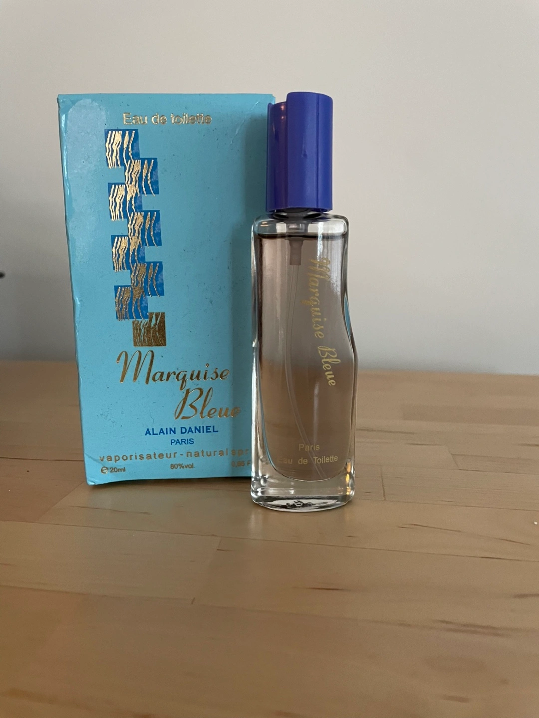 This is an Alain Daniel Marquise Bleu Eau de Toilette. It's a 20ml bottle with 80% vol. Comes with its original box. Great for carrying in a purse!