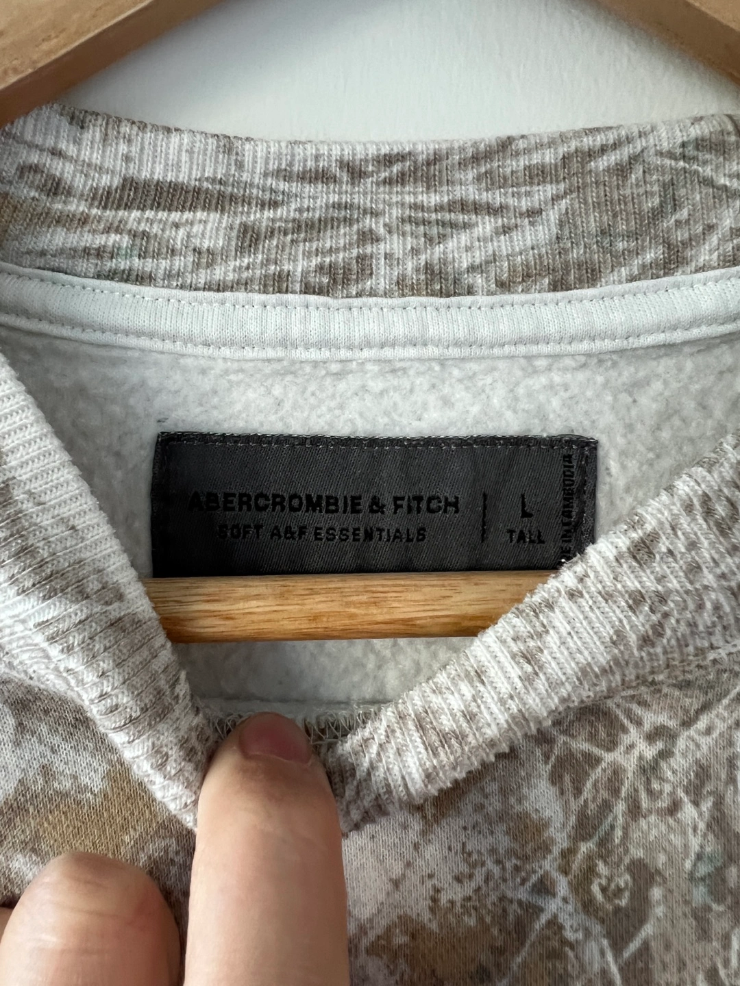 Here's a comfy crewneck sweater from Abercrombie & Fitch! It's a size large tall and features a cool camo pattern. Perfect for staying cozy on those chilly days