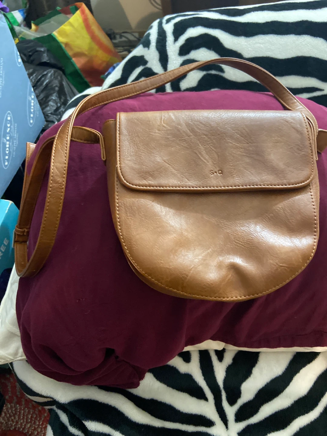 S+A Brown Faux Leather Crossbody Bag