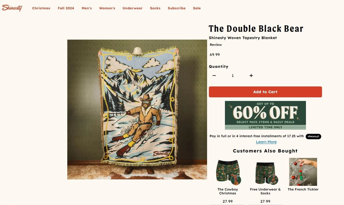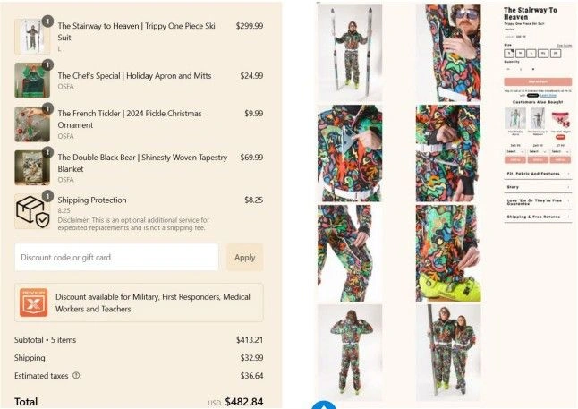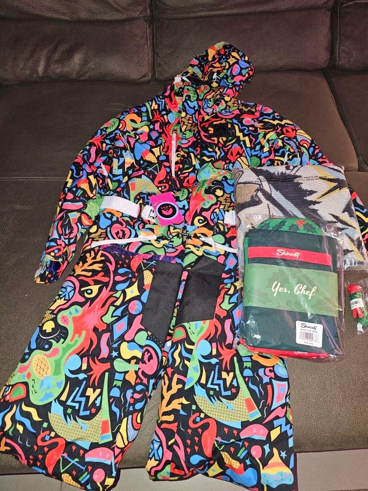 Brand new, never worn 2024/2025 Shinesty Ski suit by OOSC, "Stairway to Heaven" design, size large. Please see sizing chart for details. The package includes a skiing blanket, apron, and ornament, all unopened. This was a Christmas gift, but I purchased the wrong size and missed the return window. The current retail price for the entire package is $482.84; I paid over $540. Feel free to message if you have any questions!