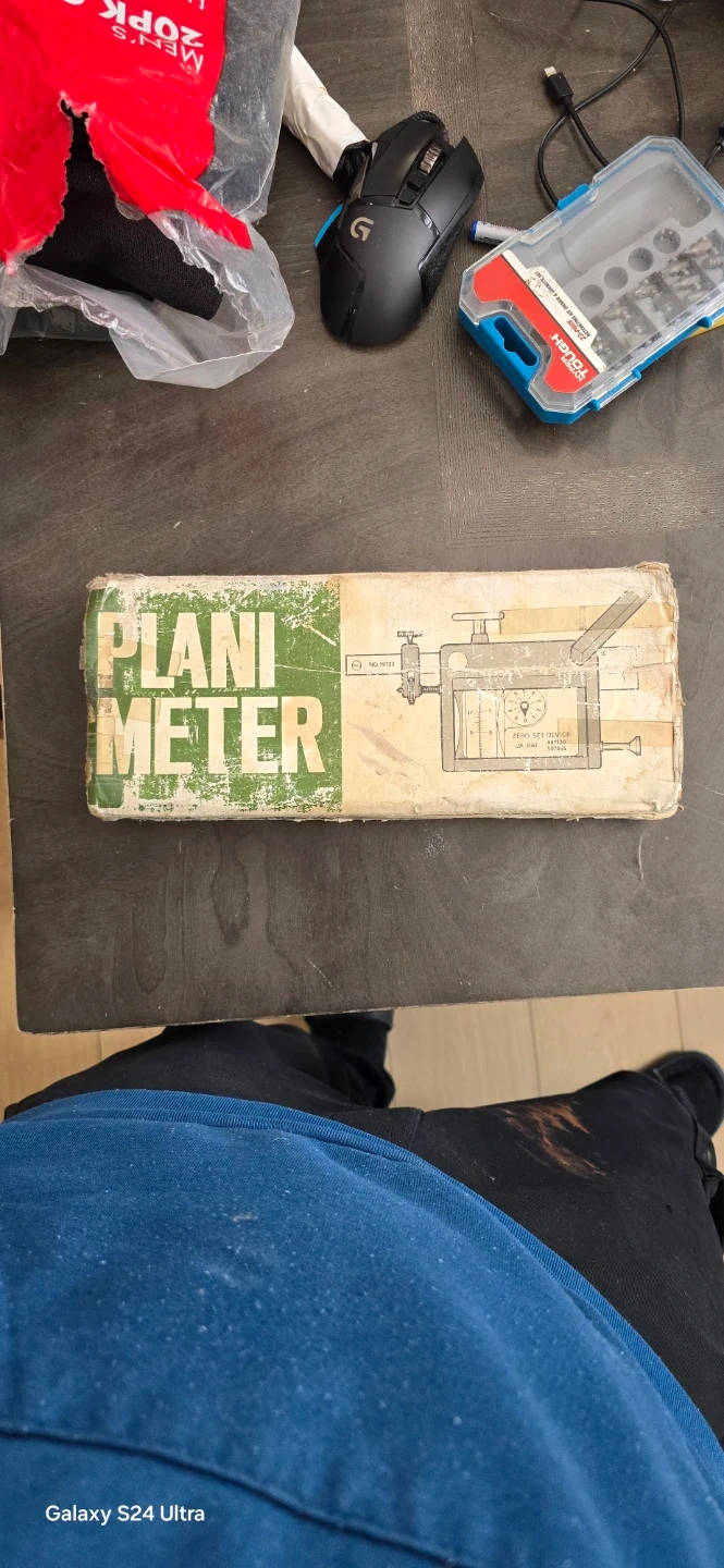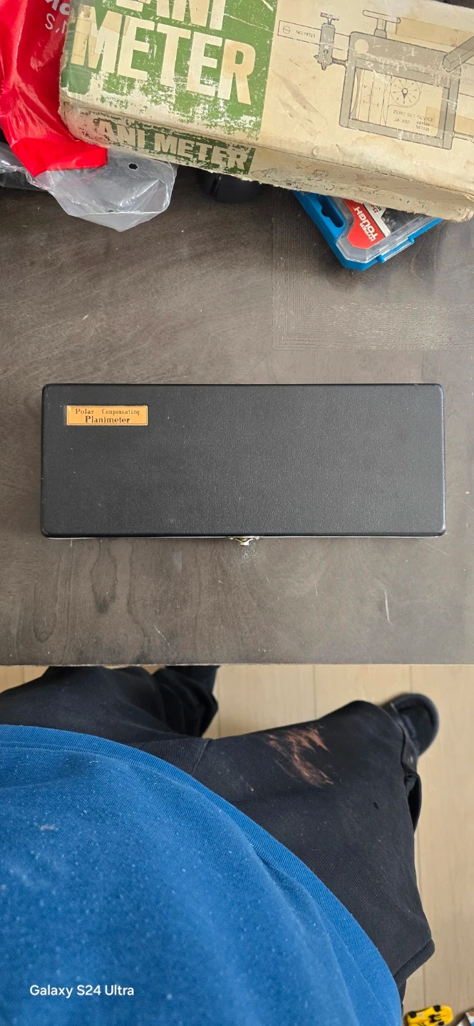This is a Polar Compensating Planimeter in its original case. It's a precision instrument for measuring areas on maps or drawings. Includes case and all visible accessories.