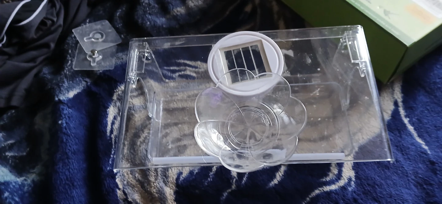 This WENMIXER window bird feeder features a solar-powered light for viewing day and night. It's made of clear acrylic for easy observation. Includes suction cups for window mounting.