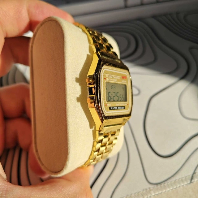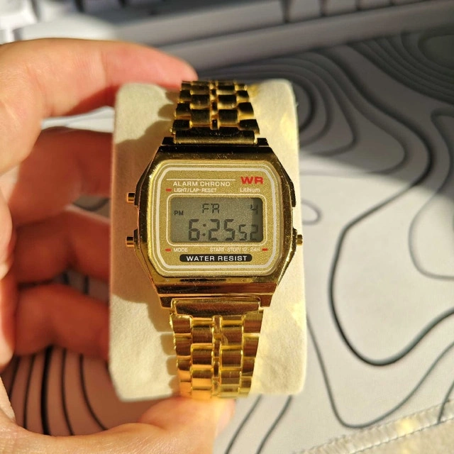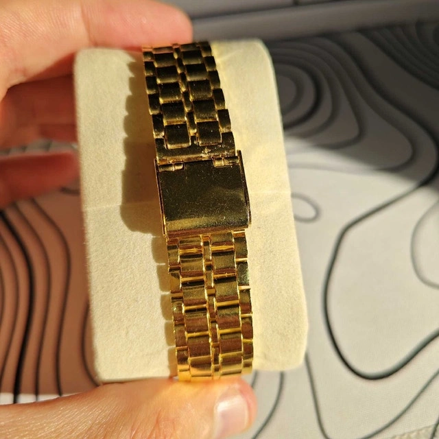 This golden color classic digital watch is a stylish blast from the past! It features a gold-tone finish, digital display with time, date, and alarm functions. It's a brand new watch. Classic digital display, gold-tone finish, alarm and date functions. Pick up in Halifax. Cash accepted.