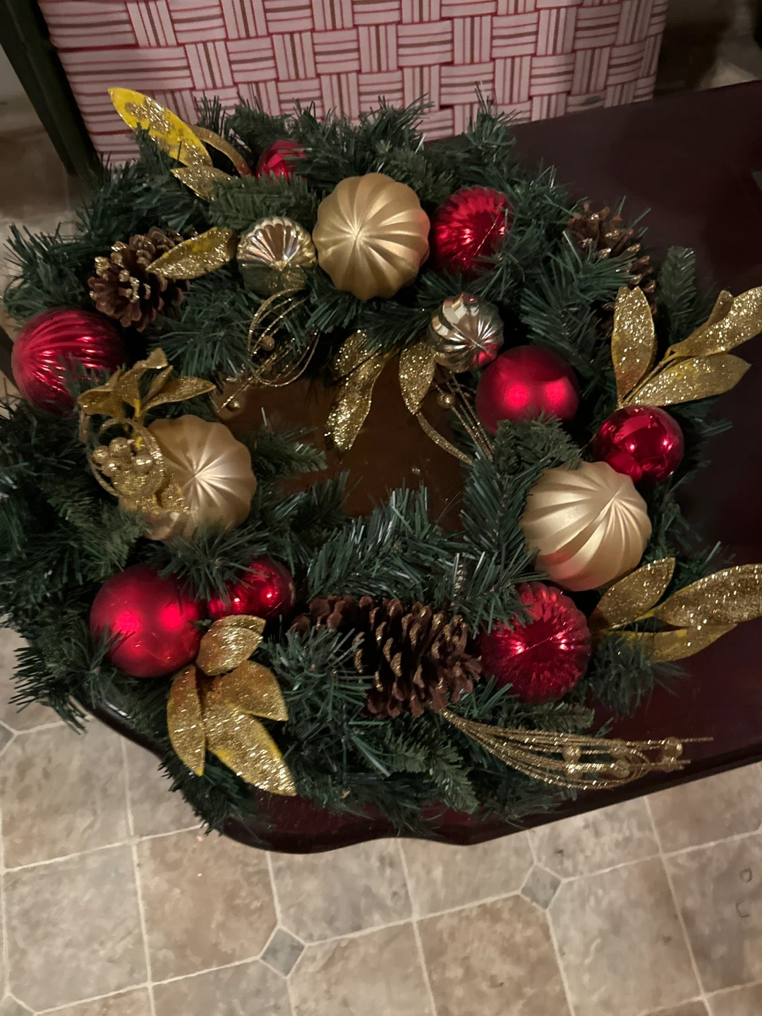 Christmas Wreath with Ornaments and Pinecones