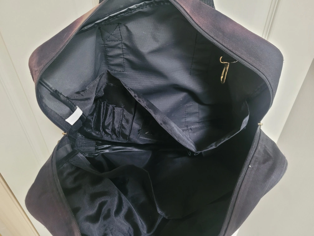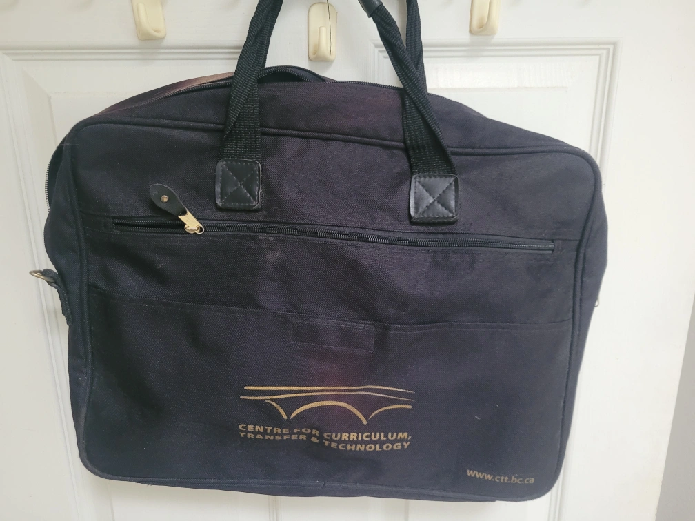 Black tote bag from the Centre for Curriculum, Transfer & Technology. It has a zipper closure and multiple pockets inside for organization. Perfect for carrying your laptop or essentials!