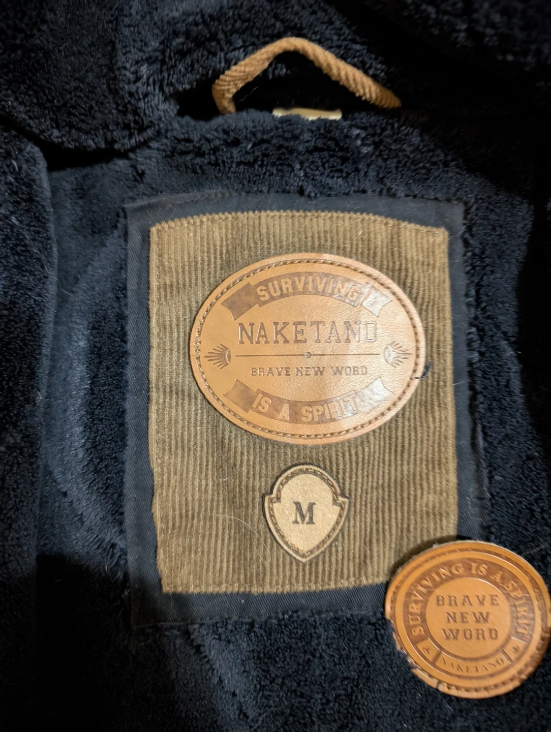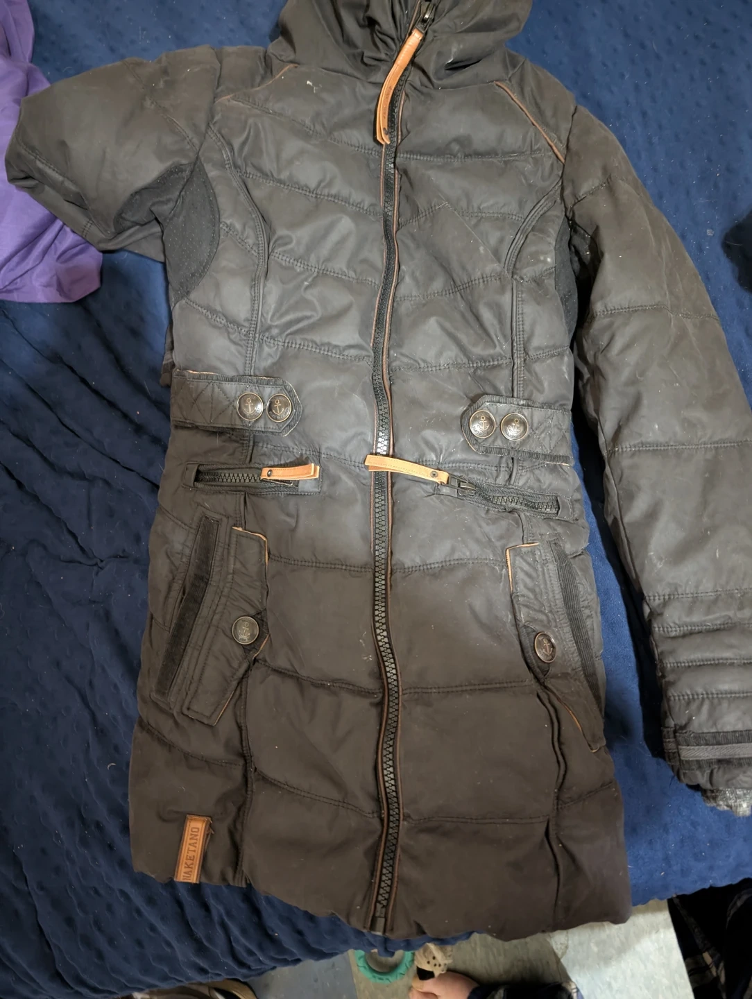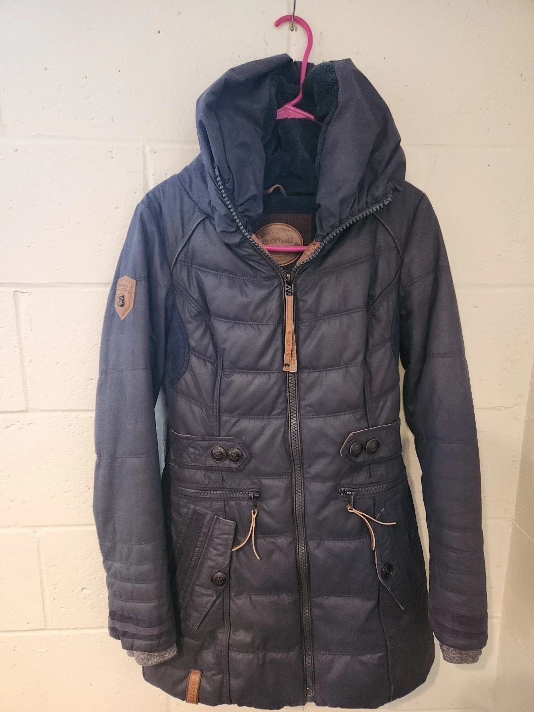 Selling a Naketano winter coat in size medium. It has a unique design with button and zipper closures. It's in good condition and ready to keep you warm this winter!