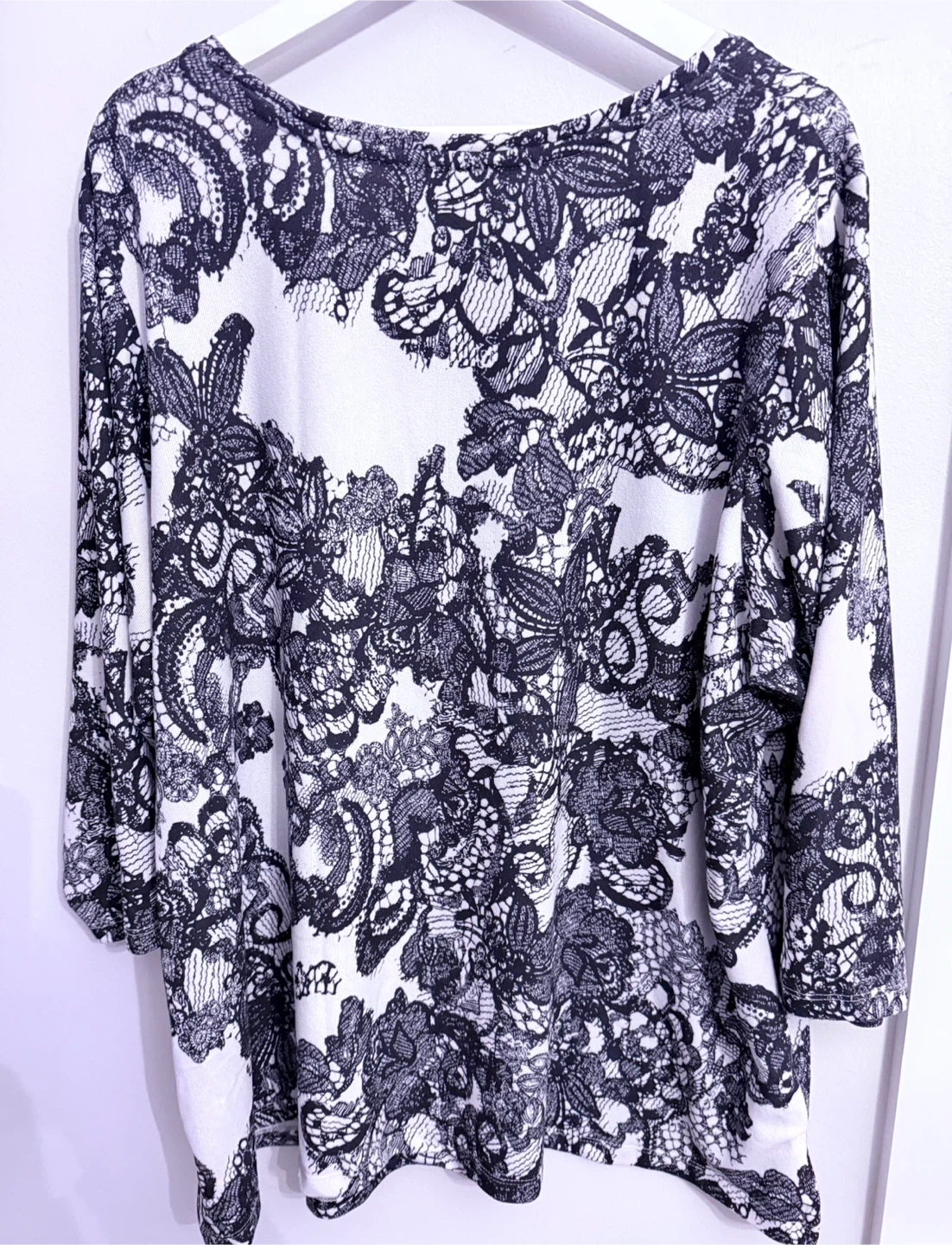 Alia Women's 3X Black and White Lace Print Top