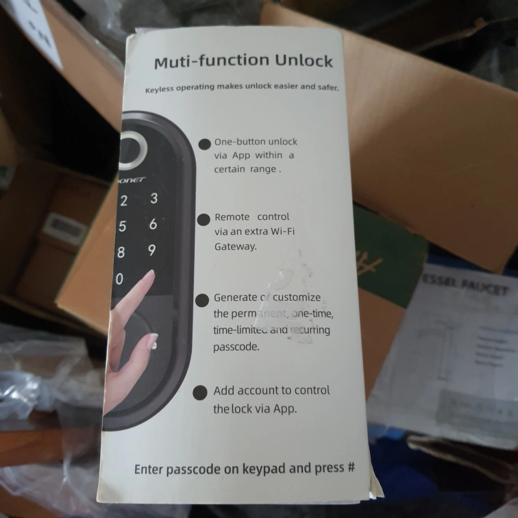This SMONET smart lock offers key-free entry and app control. It features anti-theft alerts and auto-lock functions.