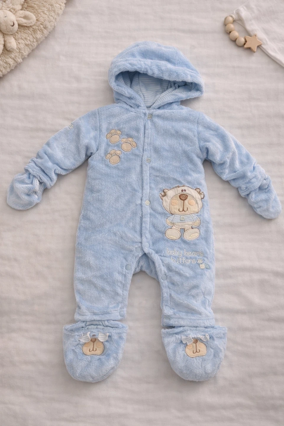 New Baby blue fleece snowsuit 3-6 months (but LARGER FIT)