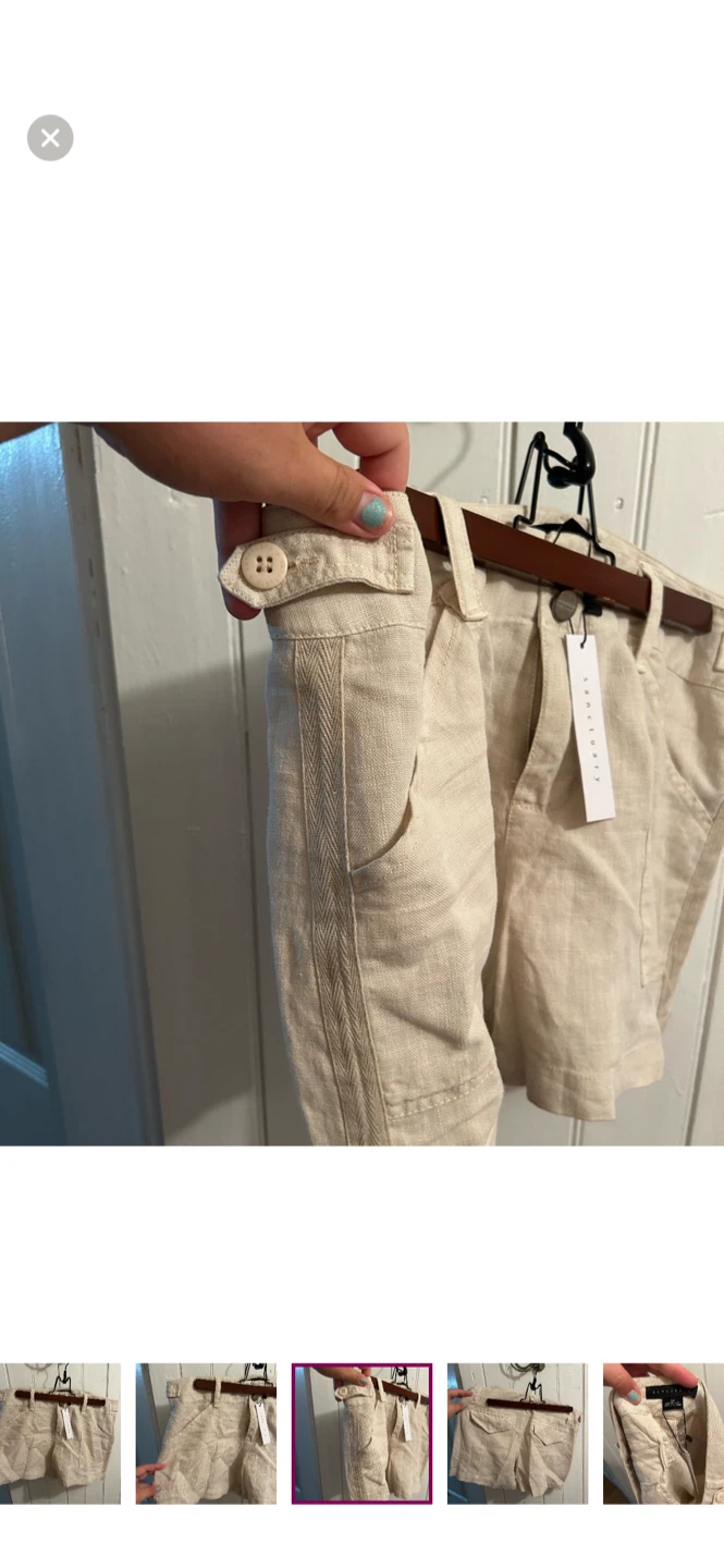 Sanctuary brand (for revolve). Tan linen shorts. Thinner material. Size women’s 28. Brand new with tags $60