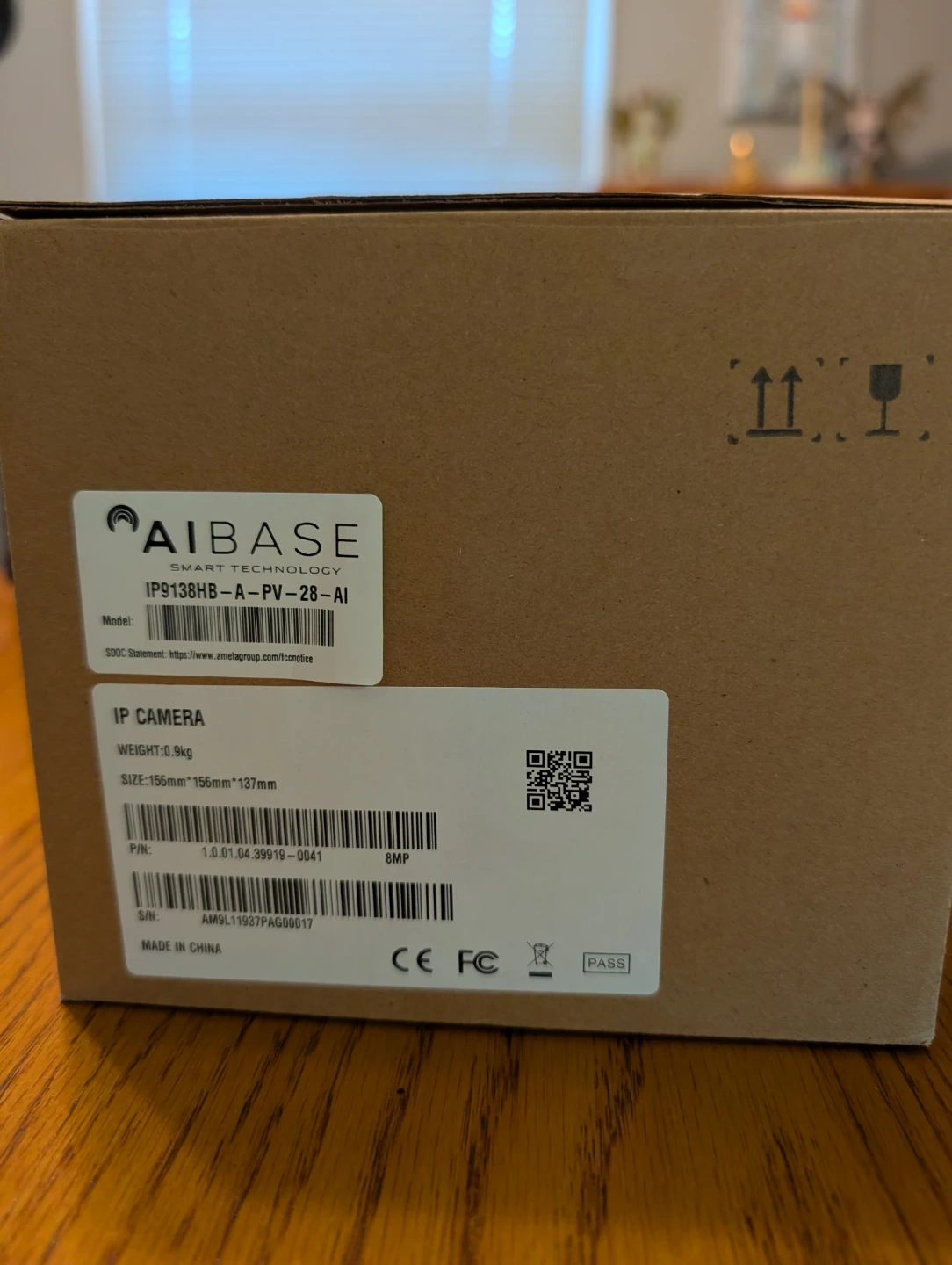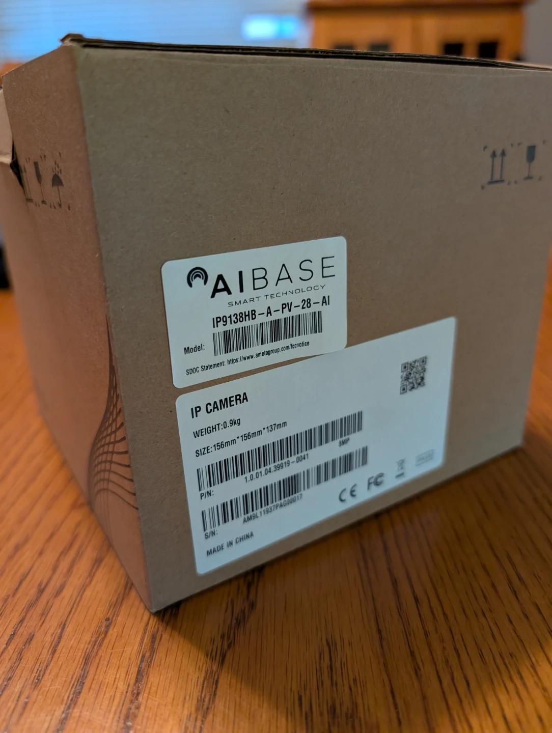Selling a brand new Aibase IP Camera, model IP9138HB-A-PV-28-AI, still in its original box! This IP camera weighs 0.9kg and its size is 156mm * 156mm * 137mm