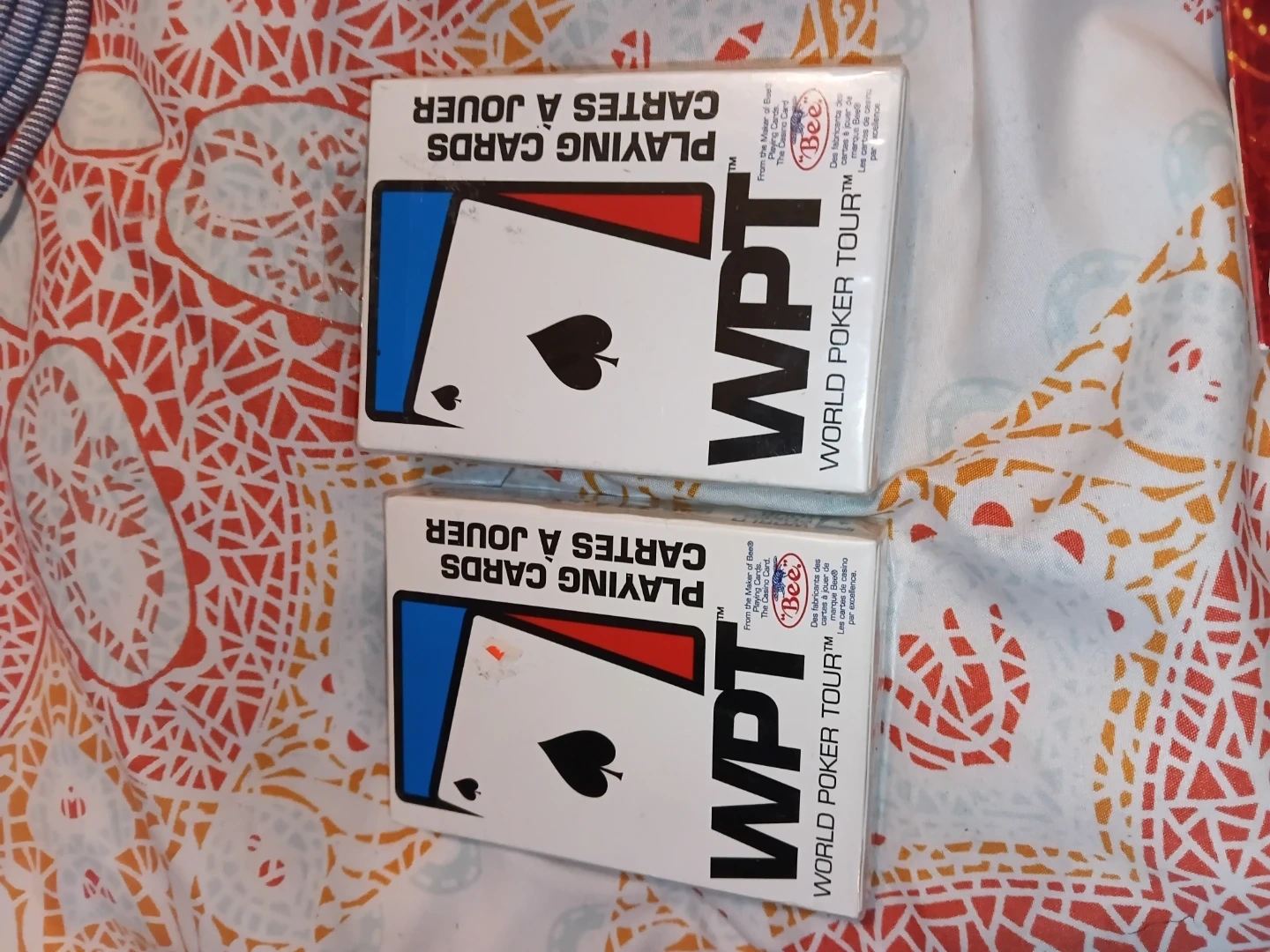 Brand new collectible set of Two decks of WPT World Poker Tour playing cards. Made by Bee, the casino card maker. These cards are ideal for any poker game or magic trick.