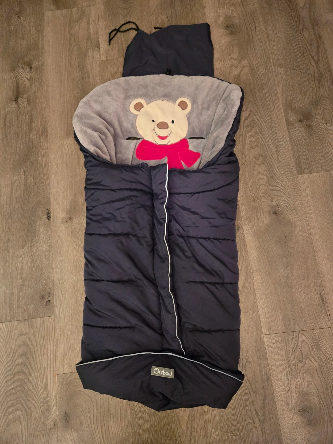 Snuggle your little one in this cozy Örzbow baby sleeping bag! It's in great condition and features a cute bear design on the front. Perfect for keeping your baby warm and comfortable during stroller rides or naps.