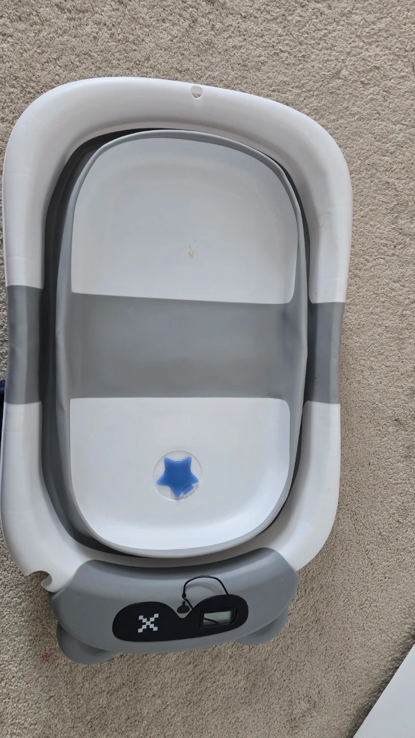 Selling a Skip Hop Moby SmartSling 3-Stage Tub in great condition! This tub grows with your baby through three stages: Stage 1: Newborn (0-3 months, up to 15 lbs), Stage 2: Infant (3-6 months, up to 20 lbs), Stage 3: Sitters (6+ months, up to 25 lbs). It features a smartsling that provides comfortable support for newborns and can be removed as your baby grows. The tub also has a built-in digital thermometer to ensure the water is just right for your little one