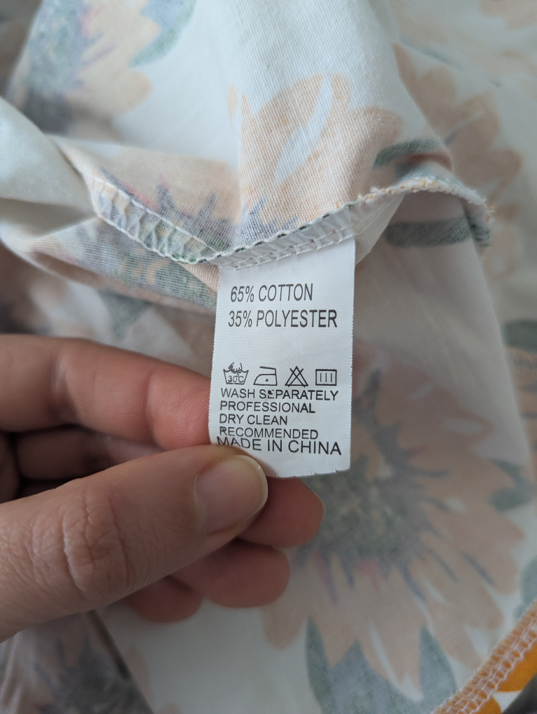 Composition: 65% cotton, 35% polyester.
