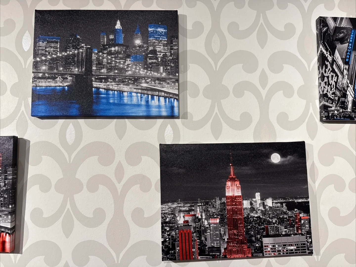 Selling a set of 7 canvas prints featuring cityscape scenes, including New York City. They're in great shape and ready to add some urban flair to your space!