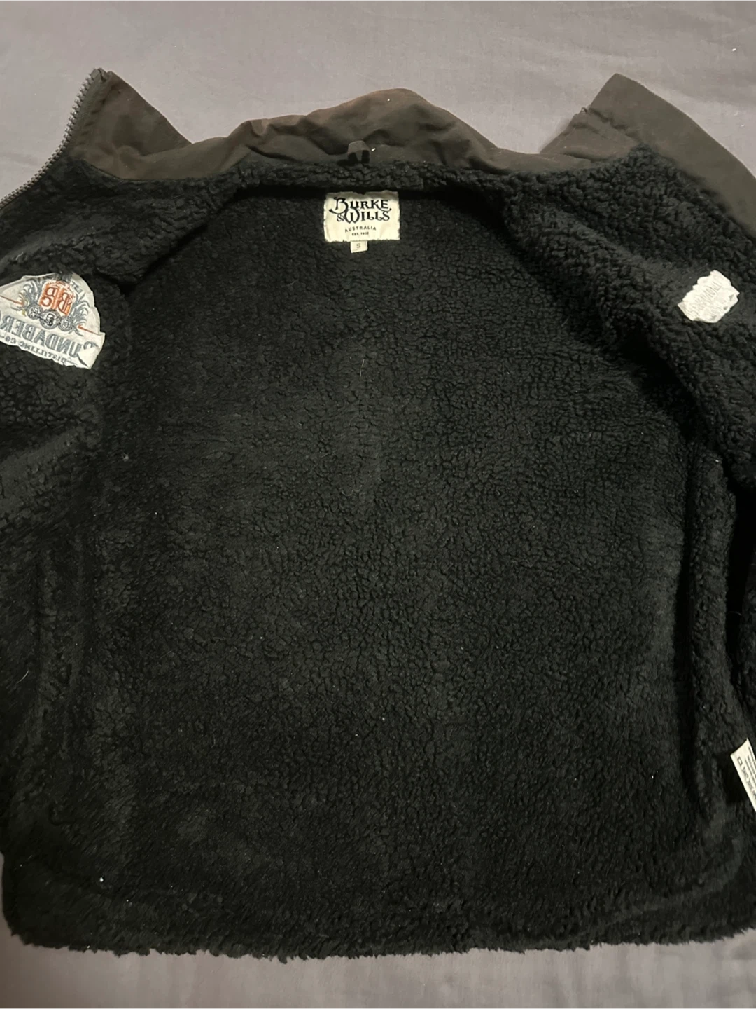Selling a Burke & Wills Australia vest in size small. It features a cozy sherpa lining and is made from 100% cotton. The vest is oilskin and waterproof. Men’s small or will fit a women’s medium, maybe large.